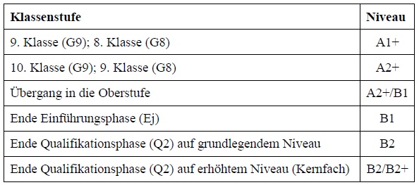 Folgende Niveaus werden gemäß dem europäischen Referenzrahmen angestrebt: