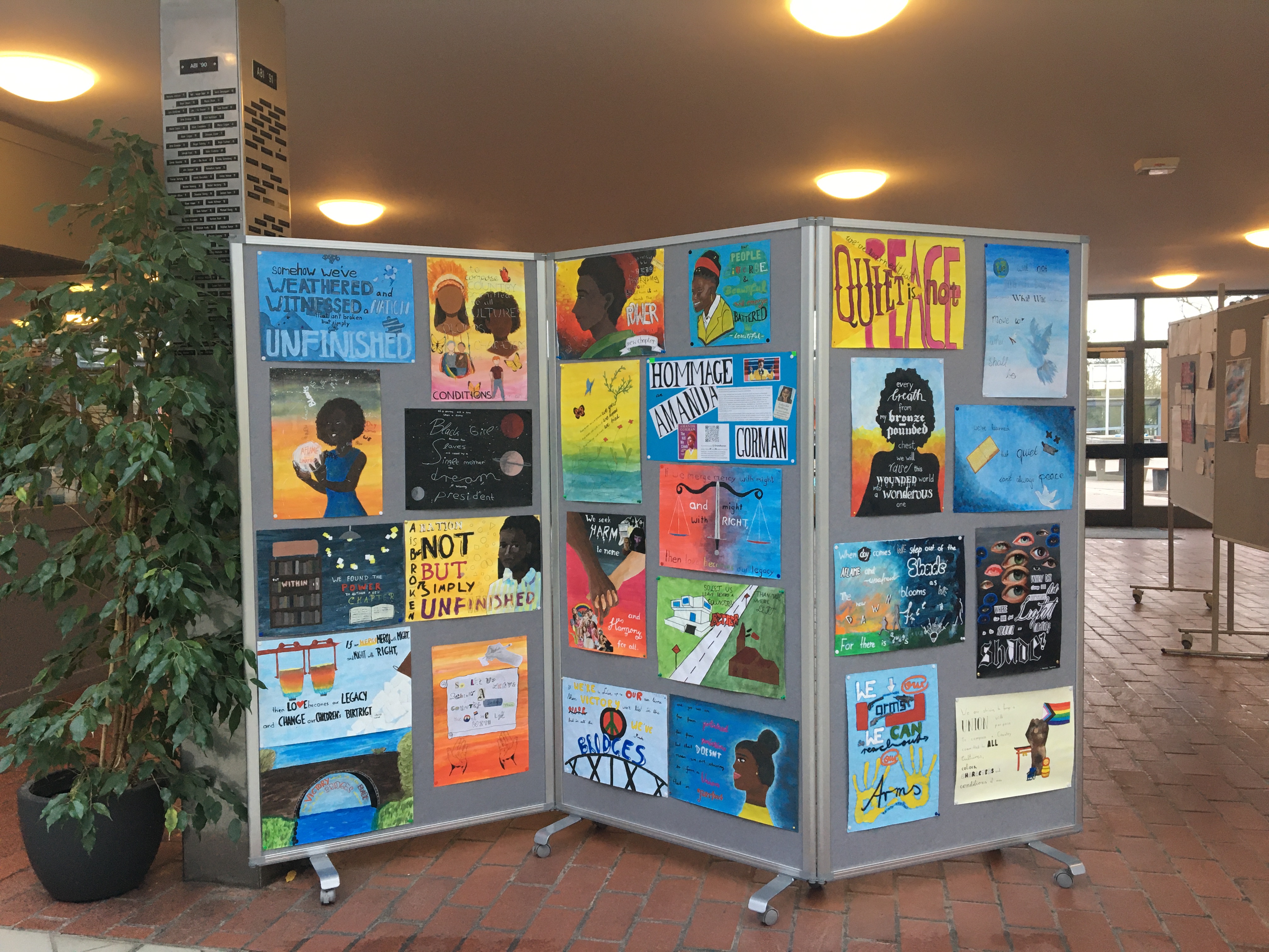 Hommage an Amanda Gorman Die Schüler:innen des Ej-Grundkurses und der Klassen 8f sowie 8b ließen sich von den Zitaten aus dem Gedicht „The Hill We Climb" von Amanda Gorman zur...