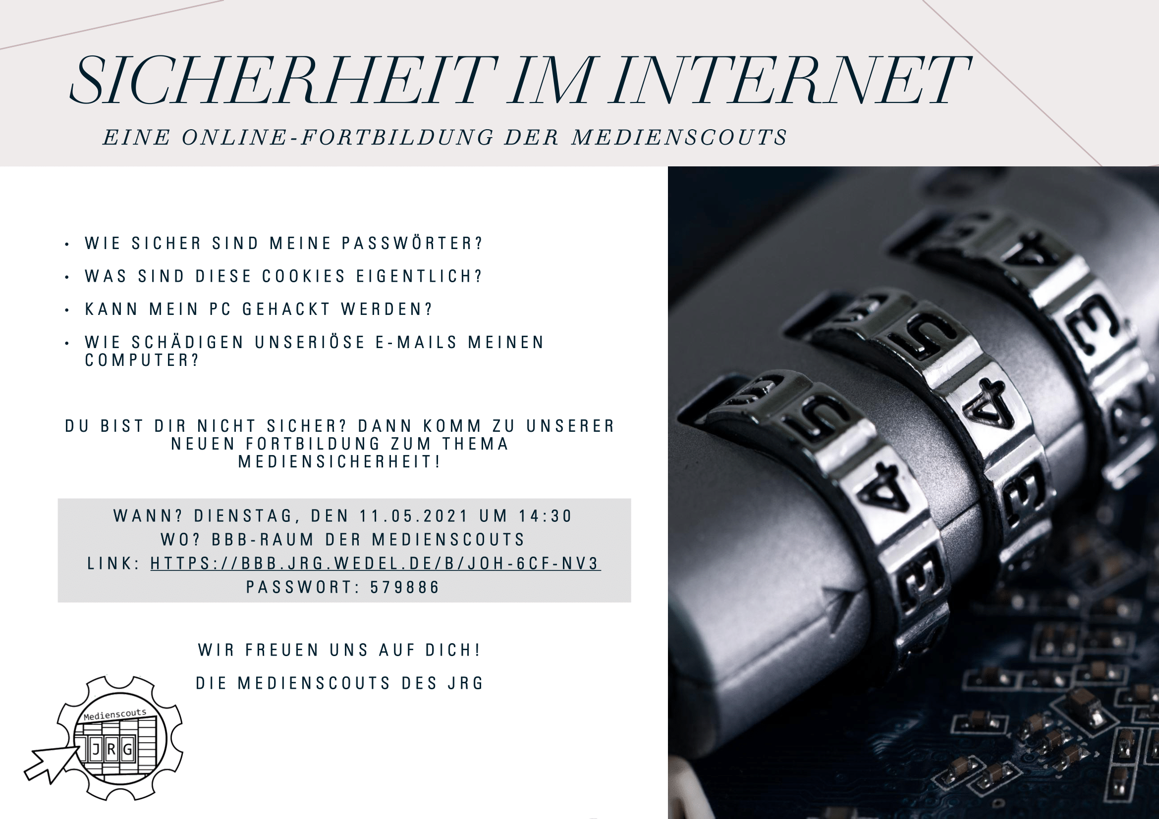 Liebe Mitglieder der Schulgemeinschaft des JRG, in der aktuellen Lage arbeiten wir sehr viel im Internet und mit digitalen Medien. Doch hier stecken auch einige Risiken, die oft...