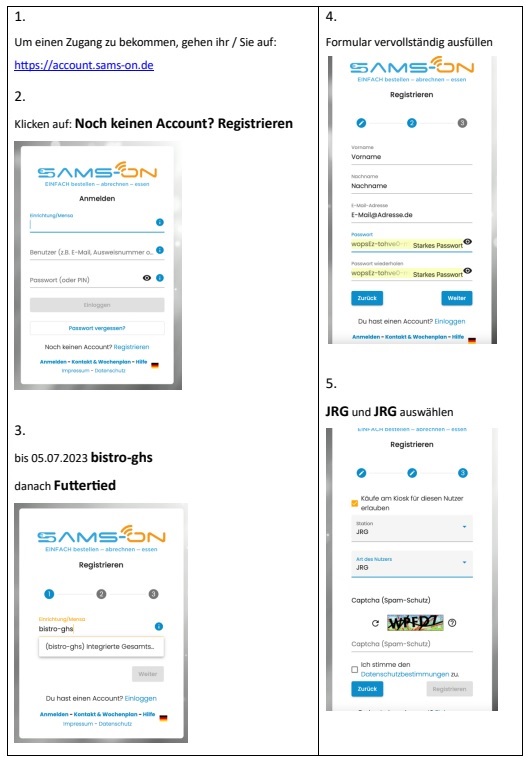Nachfolgend finden Sie eine Bildergalerie, mit Hinweisen zum Registrierungsprozess. Beachten Sie bitte, dass Sie sich unter dem Betreiber "Bistro-GHS" registrieren müssen !!