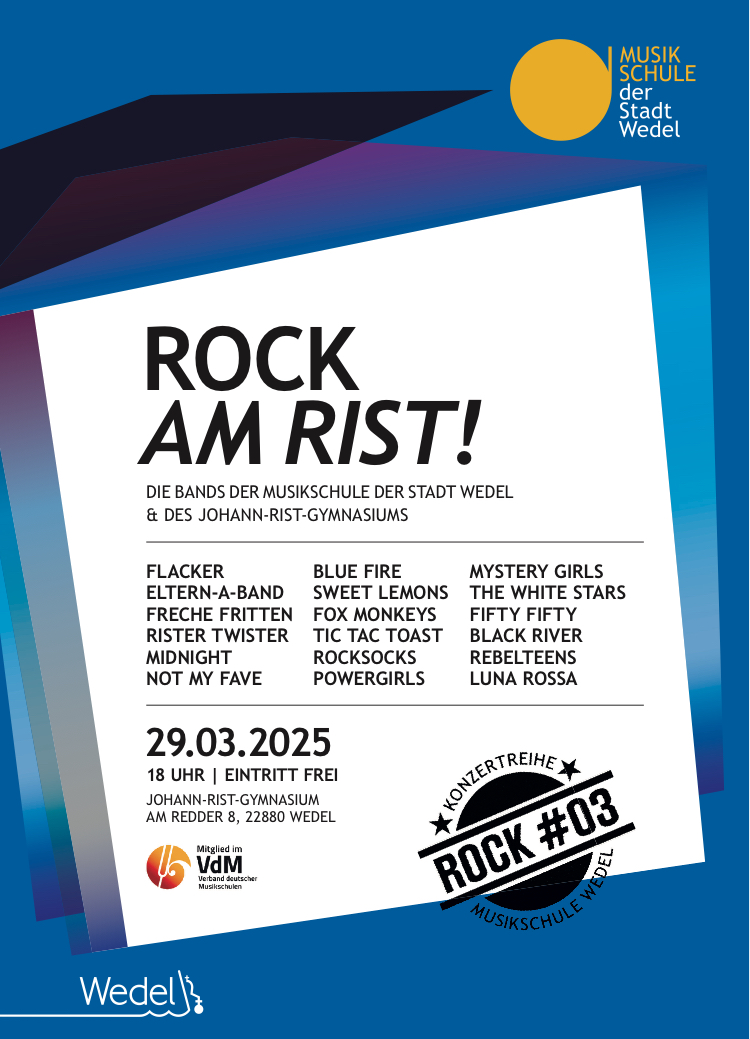 In den 5. und 6. Klassen bietet das Johann-Rist-Gymnasium musikalisch besonders interessierten Schüler*innen einen speziellen Musikzweig an. Die Schüler*innen erlernen im Unterricht und in zusätzlichen Stunden ein symphonisches Blasinstrument. Unterstützt wird dieser Musikzweig durch die Musikschule Wedel.