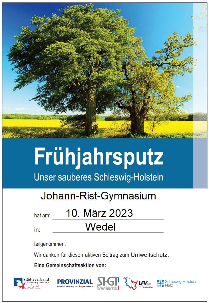 Außerdem arbeiten wir darauf hin, die Kriterien für die Auszeichnung als Zukunftsschule zu erreichen. Momentan erfüllen wir die Kriterien für die Stufe zwei. Mit unserem Handeln wollen wir das Johann-Rist-Gymnasium zu einem nachhaltigeren Ort machen.
