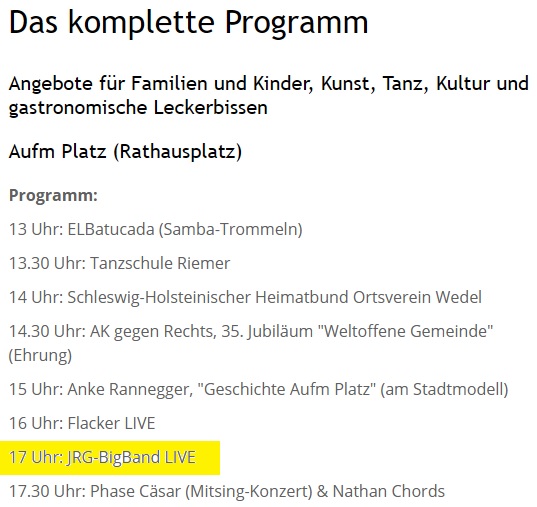 Unsere Bigband spielt um 17:00 auf dem Rathausplatz.