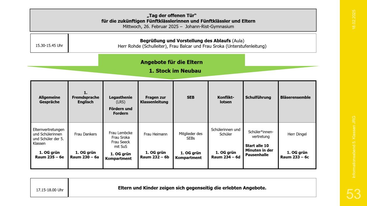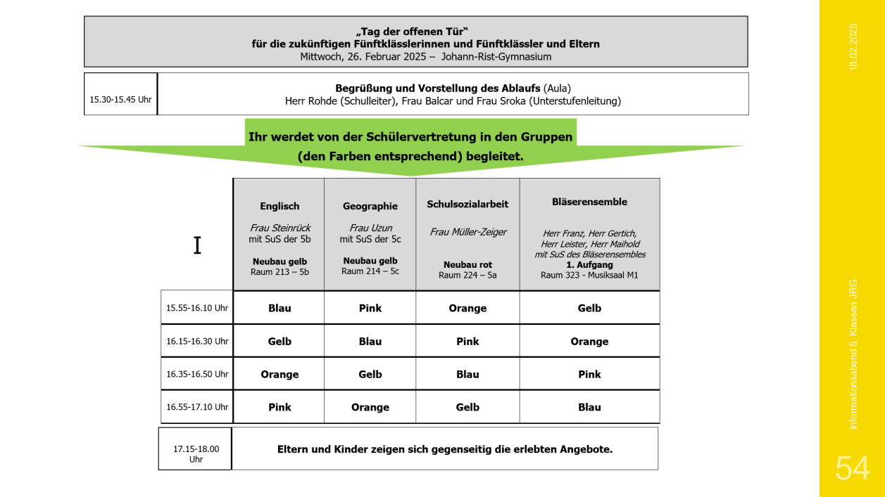 Präentation des JRG und Informationen zur Anmeldung der zukünftigen 5. Klassen