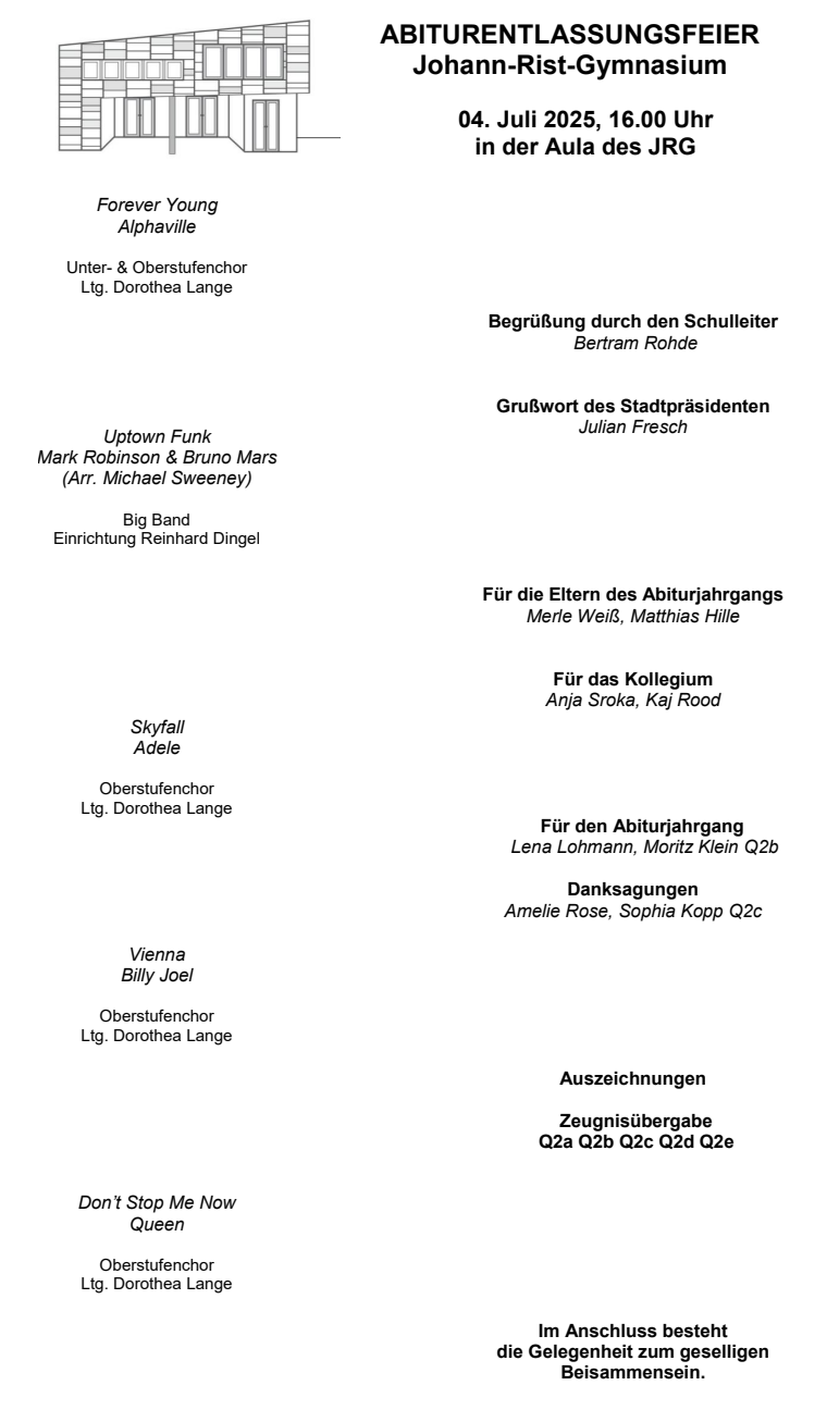 Am Freitag, den 04.07. findet die feierliche Entlassung und Zeugnisübergabe an den Abiturjahrgang 2025 statt.