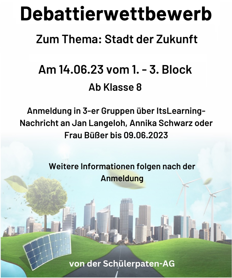 die Schülerpaten-AG organisiert für euch einen Debattierwettbewerb.