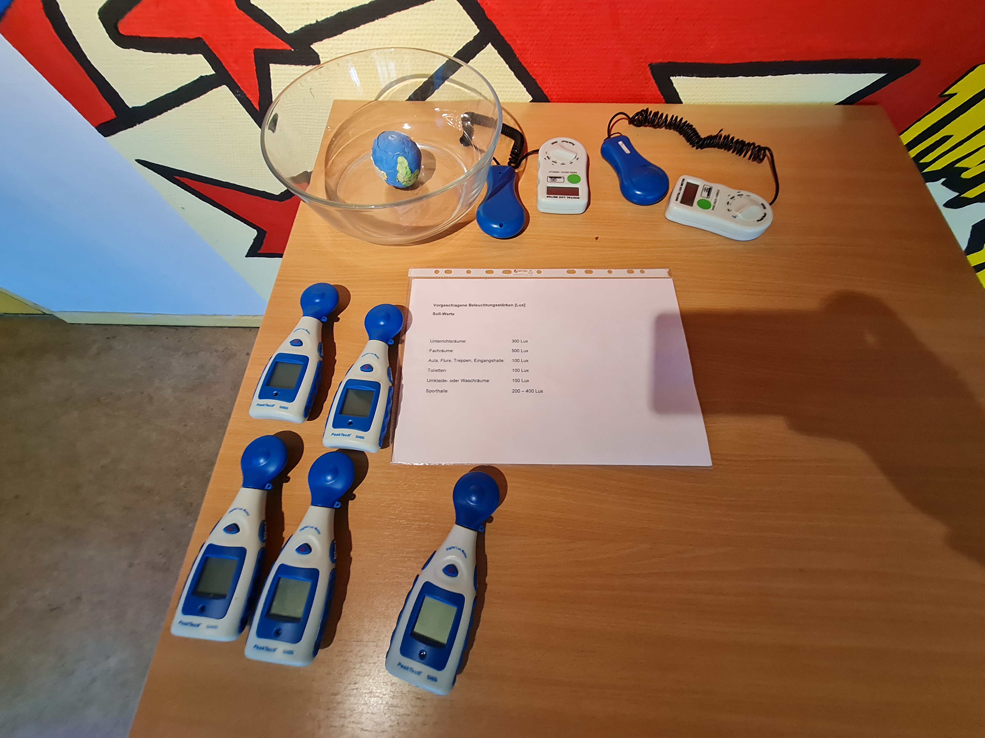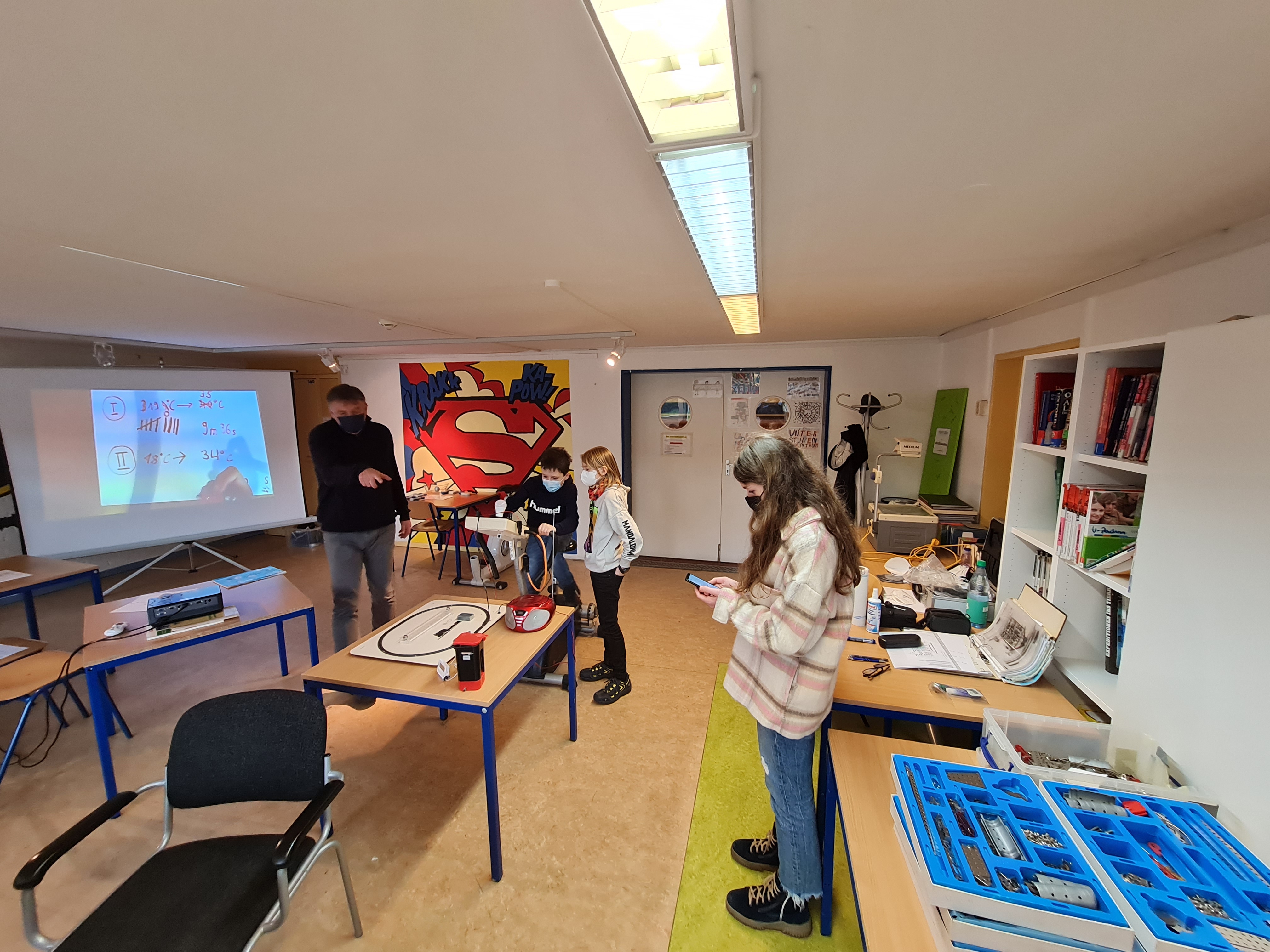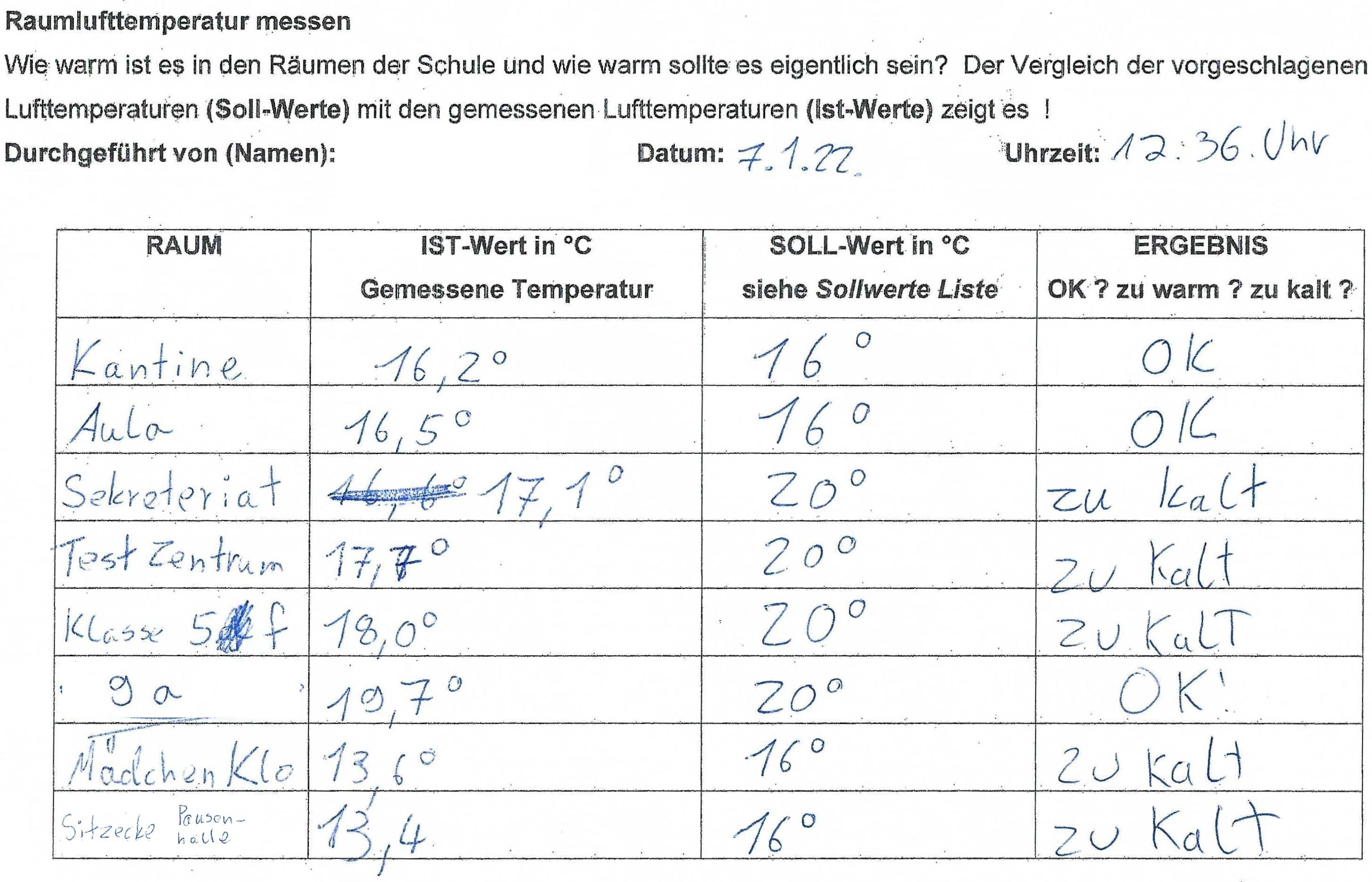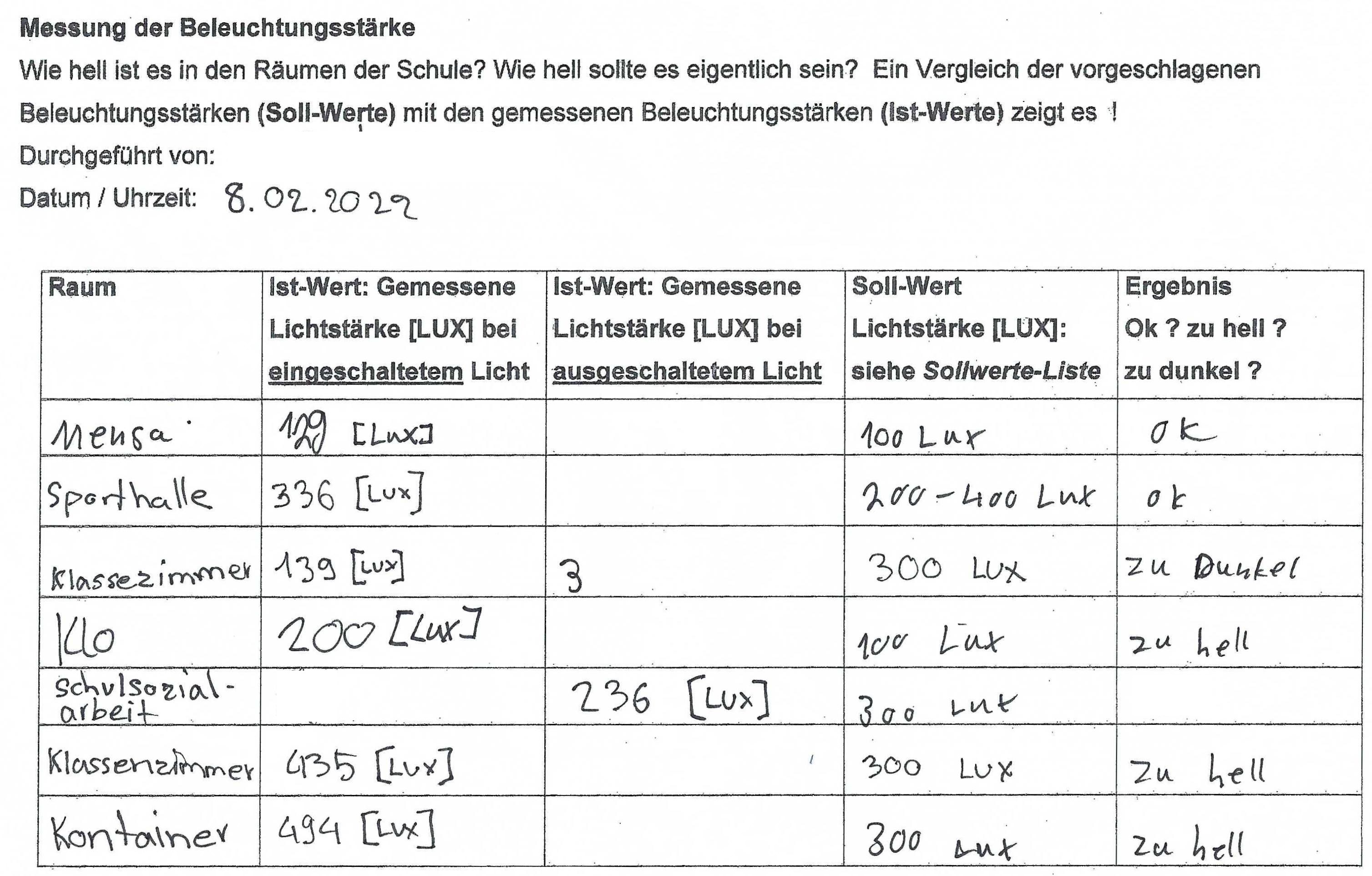 Neben praktischen Übungen ging es aber auch darum, einmal festzustellen, wo momentan an unserer Schule beim Energieverbrauch nicht immer so genau hingeschaut wird und ggfs. Einsparpotential herrscht. Hier schwärmten die Kinder mit unterschiedlichen Messinstrumenten und Protokollblättern aus, um in verschiedenen Räumen Temperatur- und Lichtmessungen durchzuführen. Bei der Auswertung stellten sie fest, dass es, sicherlich auch durch die Pandemie und das stetige Lüften bedingt, viele Räume in der Schule gibt, die deutlich zu kalt sind. Zu warme Räume, die also nach oben von empfohlenen Raumtemperaturen abweichen, gibt es indes weniger häufig.