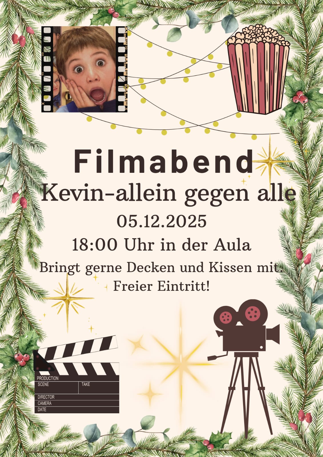 Die SV organisiert für alle Schülerinnen und Schüler des JRG einen Filmabend in der Aula. Gezeigt wird der Film "Kevin - Allein gegen alle".