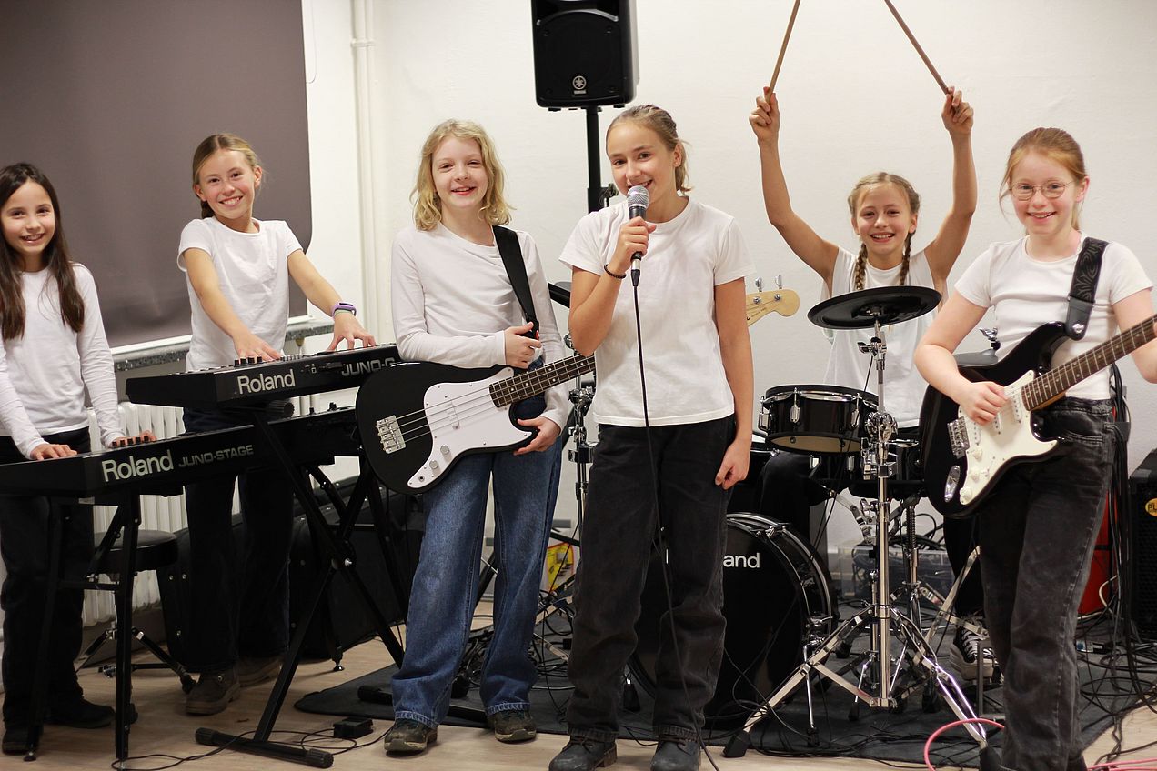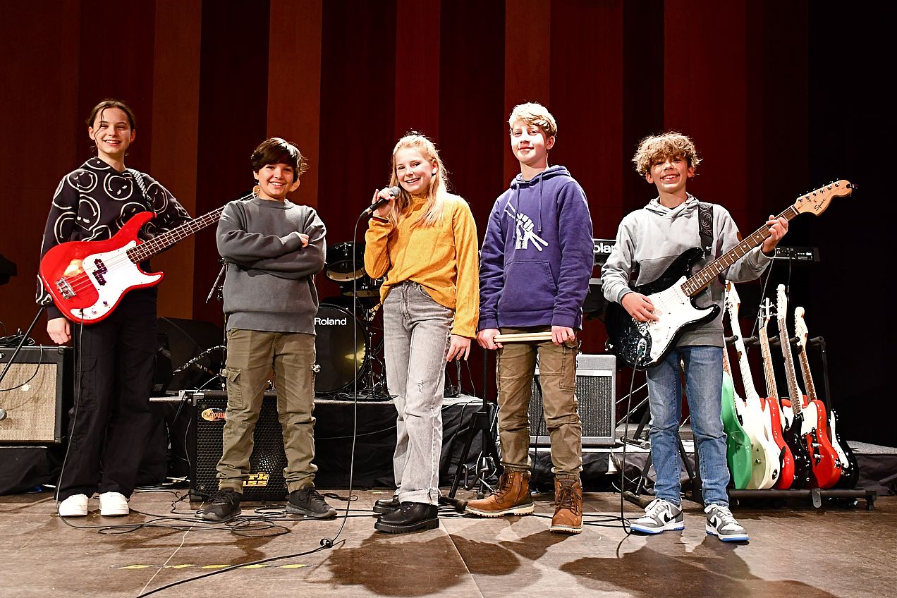 Alle JRG-Schüler-Bands: RISTER TWISTER, TIC TAC TOAST, REBELTEENS, BLUE FIRE, FIFTY FIFTY, FOX MONKEYS, NOT MY FAVE, MYSTERY GIRLS, MIDNIGHT, BLACK RIVER, WHITE STARS, SWEET LEMONS, ROCKSOCKS, POWERGIRLS