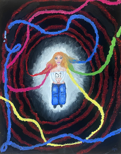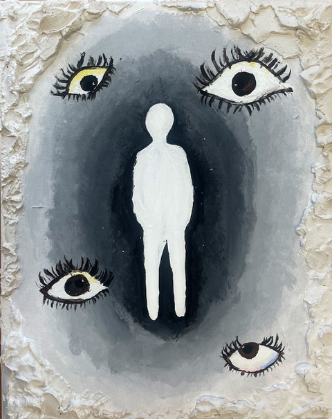 Nachdem die Gruppe sich gegenseitig gezeichnet hatte, wurden diese Zeichnungen auf Leinwand in einen abstrakten Hintergrund eingefügt. Die Herausforderung bestand darin, mit Gips erhabene Momente als Relief zu integrieren. Der Hintergrund sollte in der Gestaltung etwas über die eigene Persönlichkeit ausdrücken. Ein jedes Werk zeigt eine individuelle Art der Gestaltung.