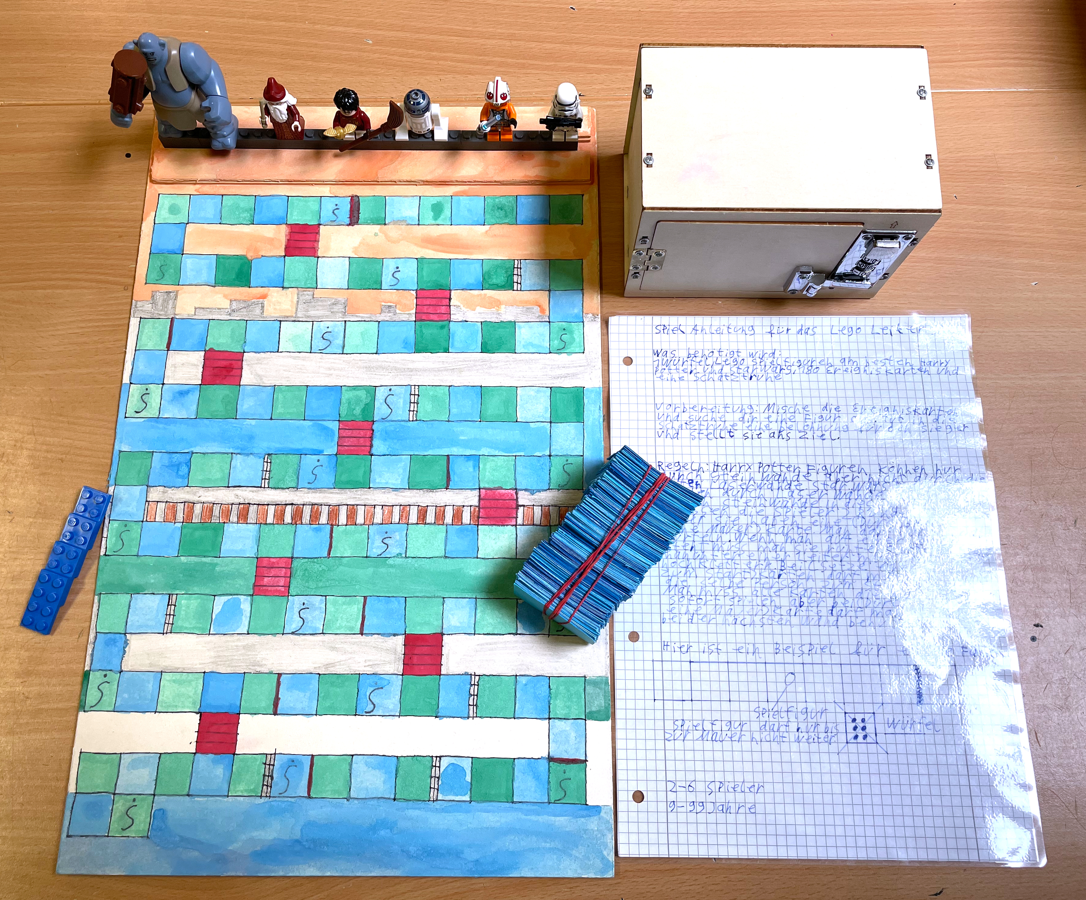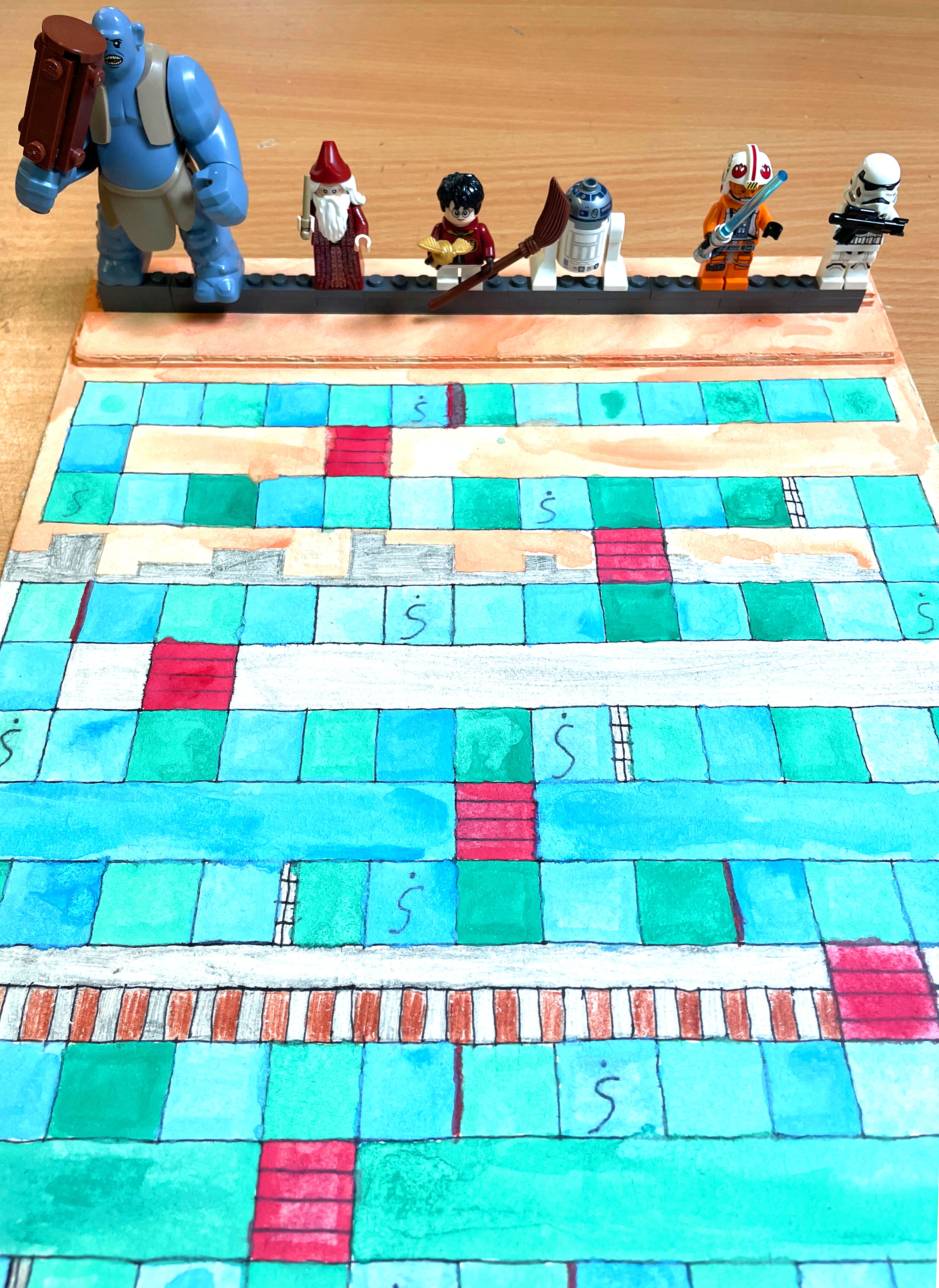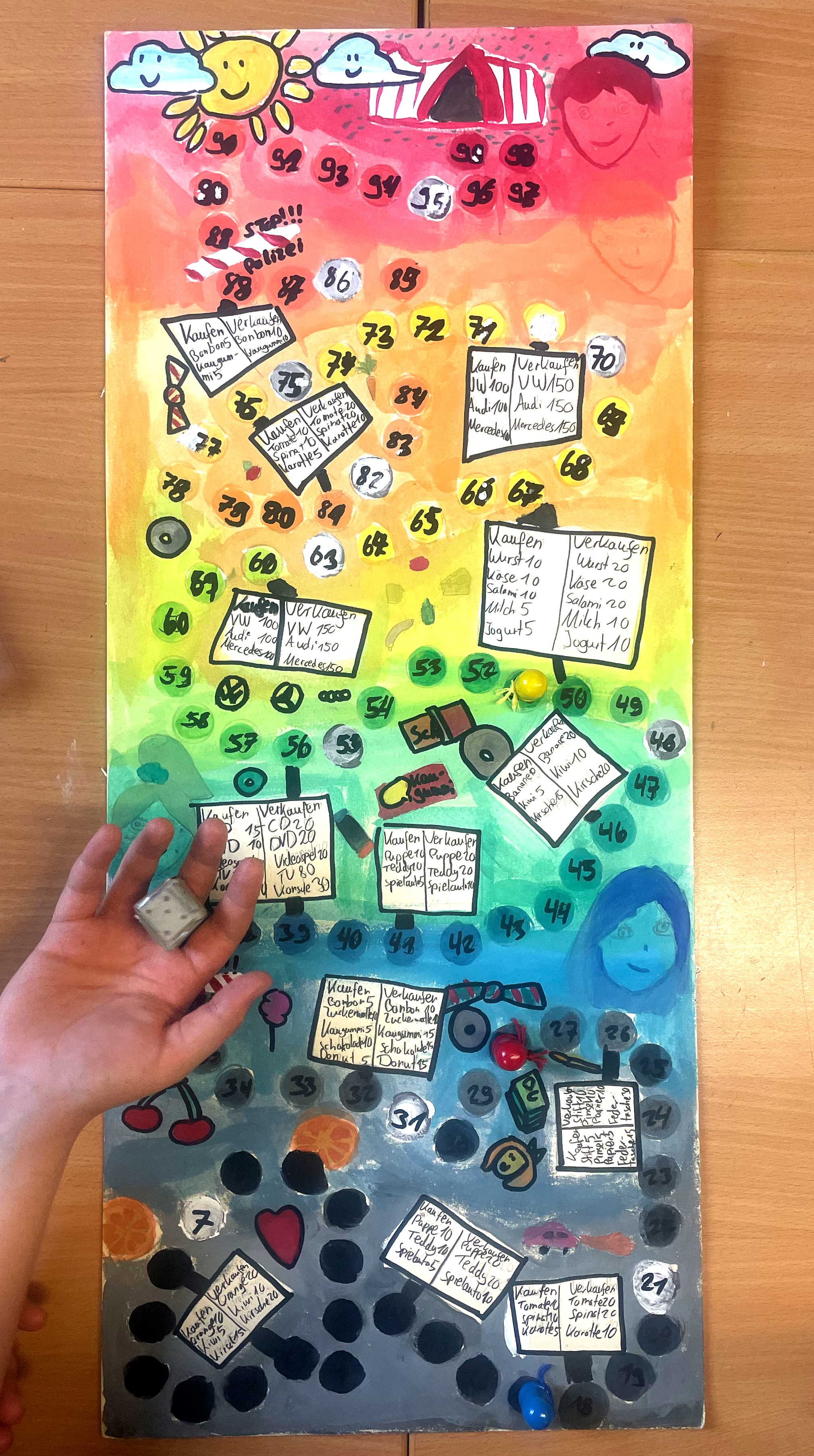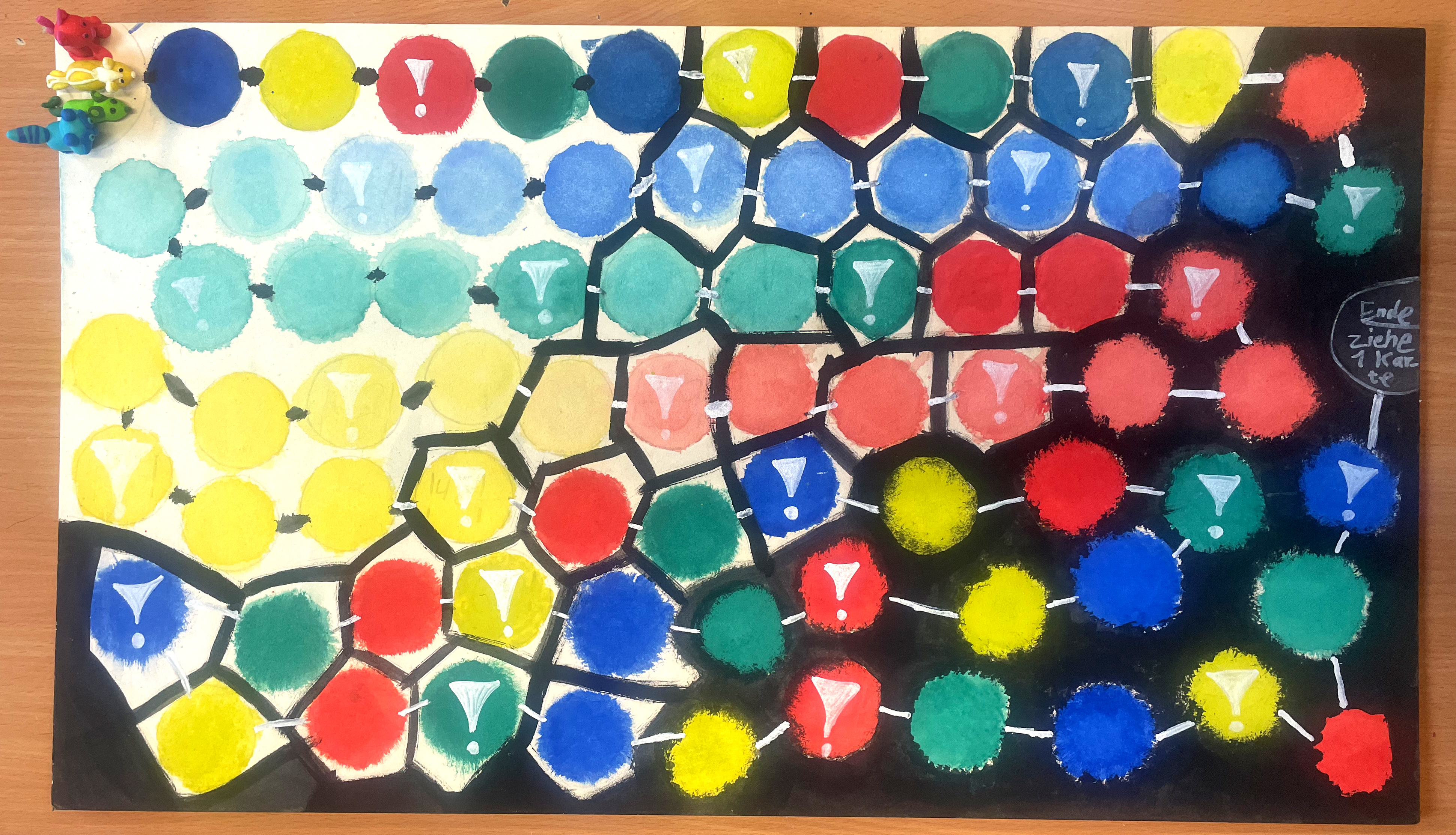 Die Kinder der 5d haben die Einführung in die Farbenlehre mit der Gestaltung von Spielbrettern verbunden.