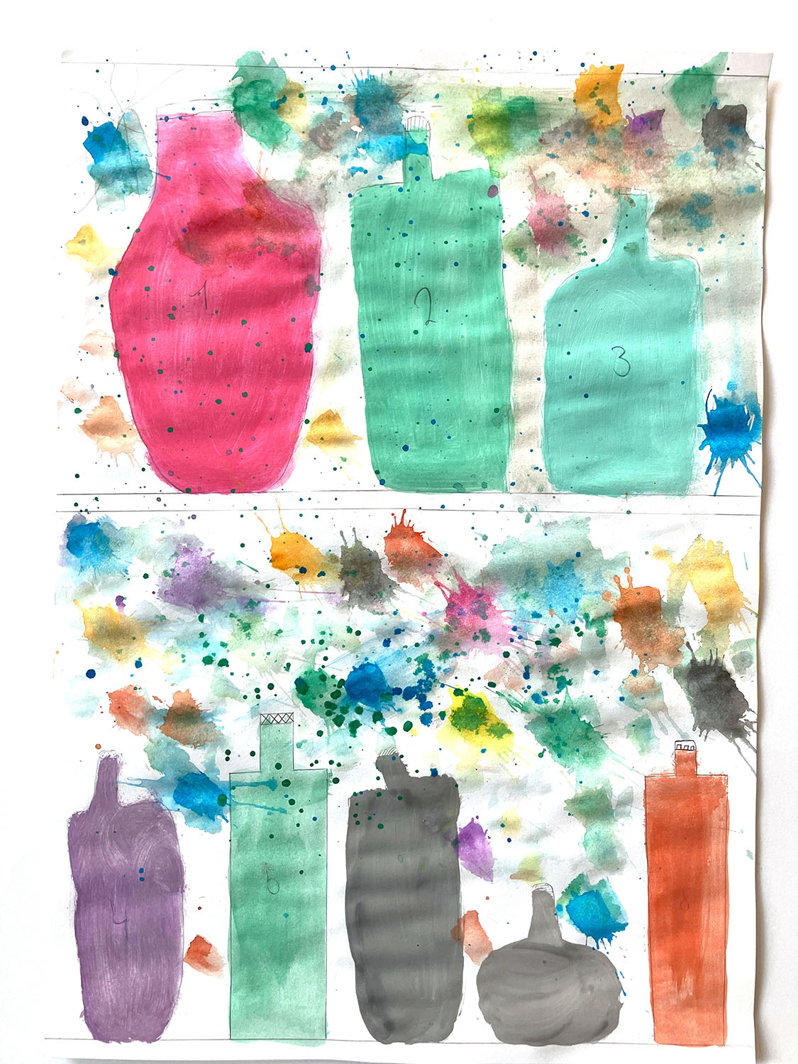 Die Klasse 6e hat vor den Sommerferien Eindruck und Ausdruck von Farbe durch freudiges Erleben kennengelernt und sich so dem großen Thema Farbe genähert.