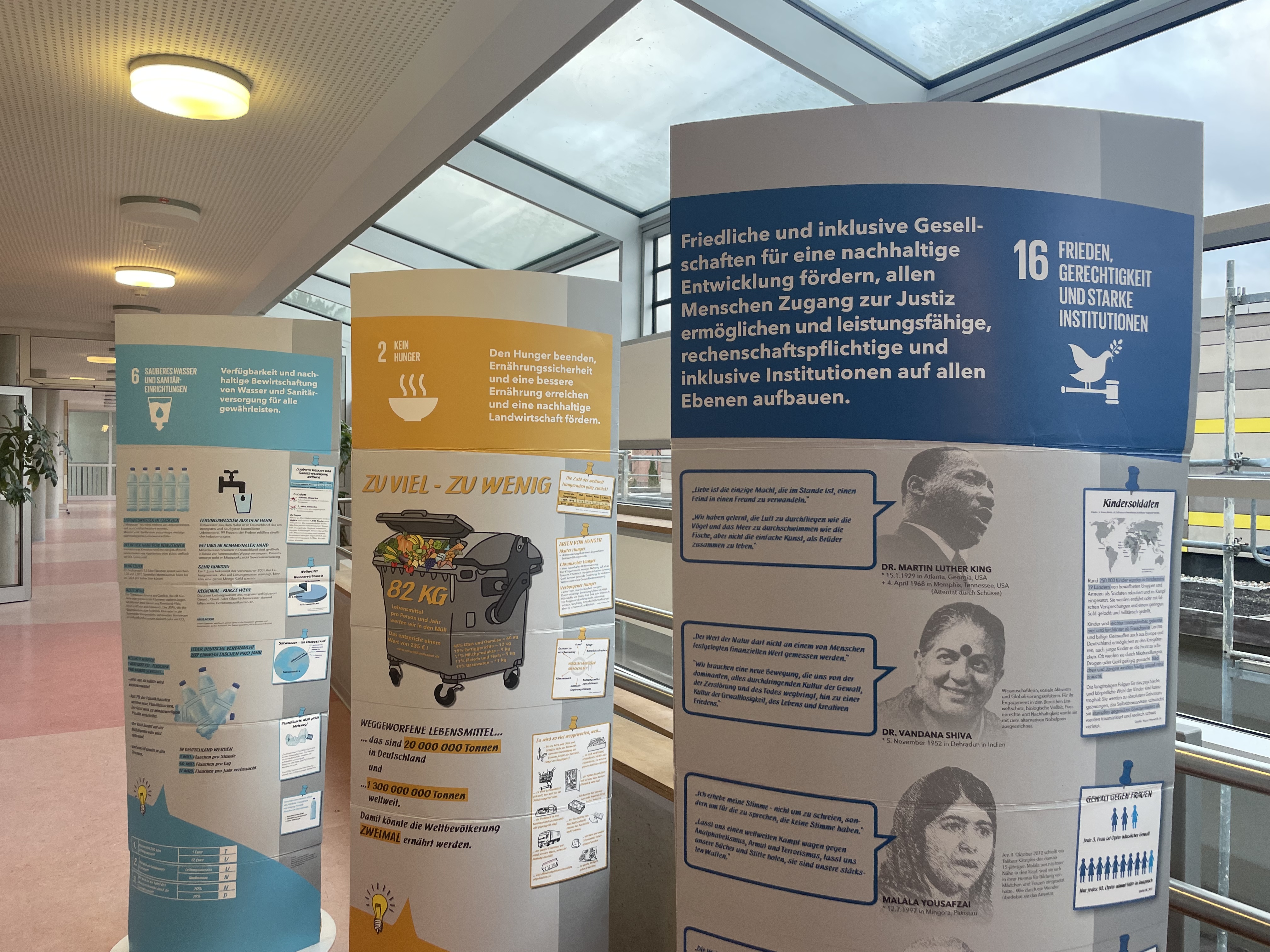 Unser Kurs hat sich schon seit längerem mit den 17 SDG Zielen beschäftigt und hat es für wichtig empfunden, dass auch andere Schülerinnen und Schüler sowie Lehrkräfte sich durch diese Ausstellung über die wichtigen Ziele informieren und lernen können, wodurch sie helfen können diese bis 2030 umzusetzen. Diese 17 Ziele wurden beschlossen, um für eine nachhaltige Welt zu sorgen. Es geht bei diesen Zielen nicht nur um die Umwelt, sondern auch soziale Aspekte und die Wirtschaft.