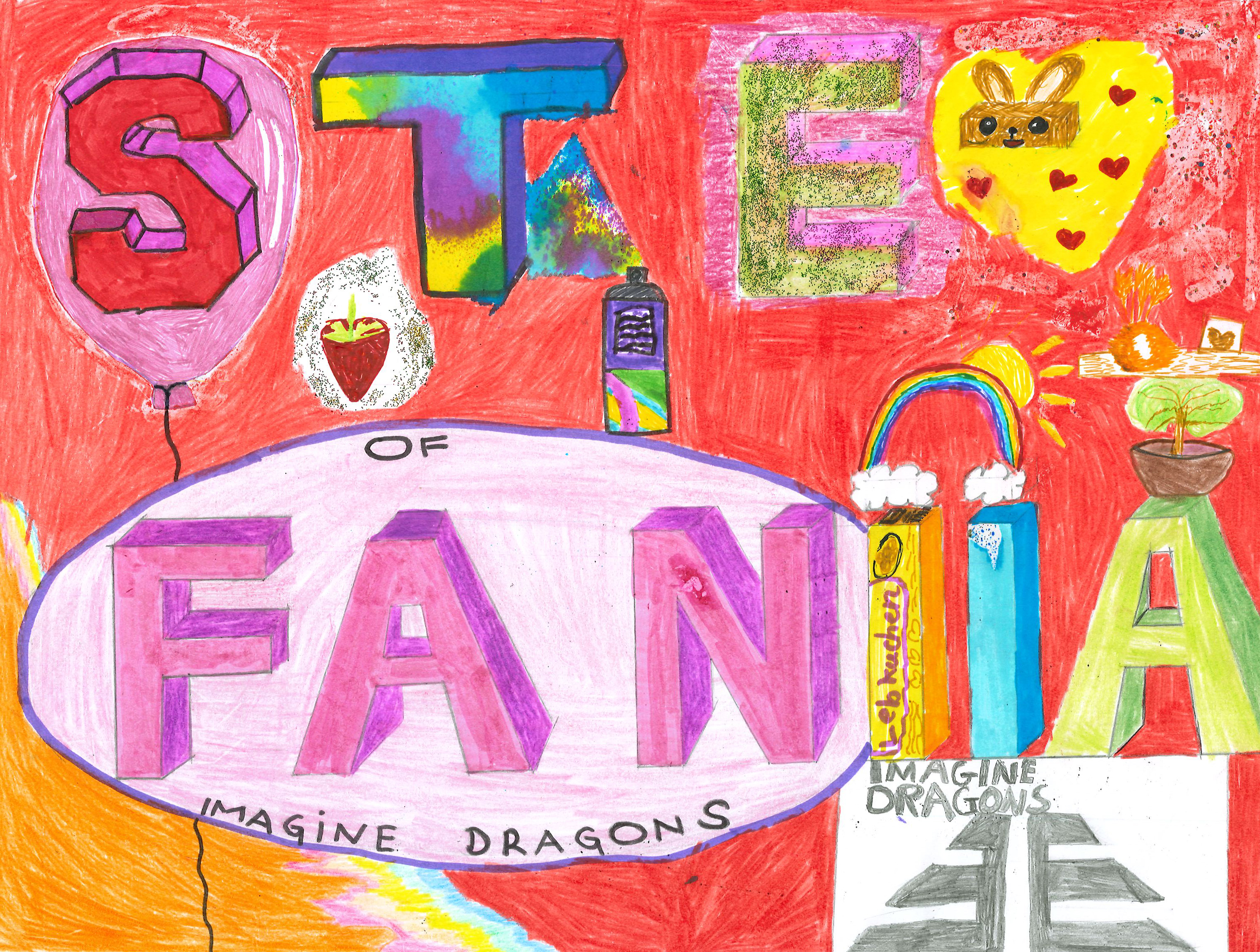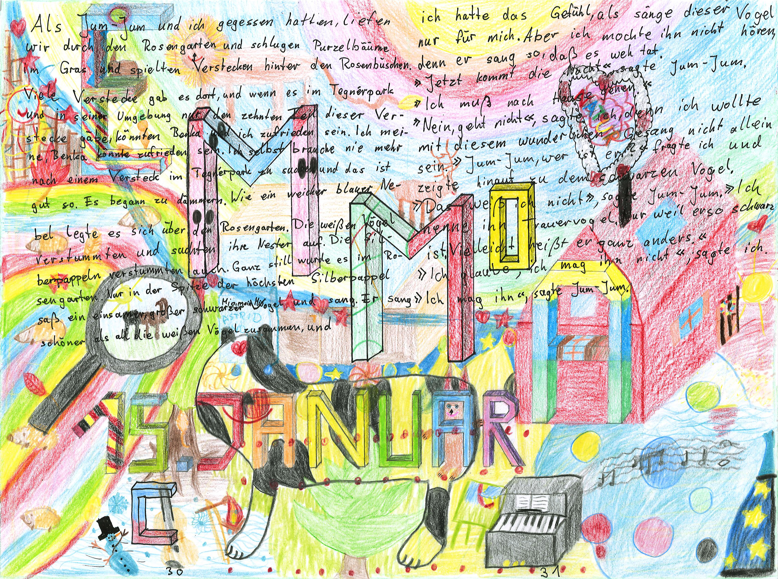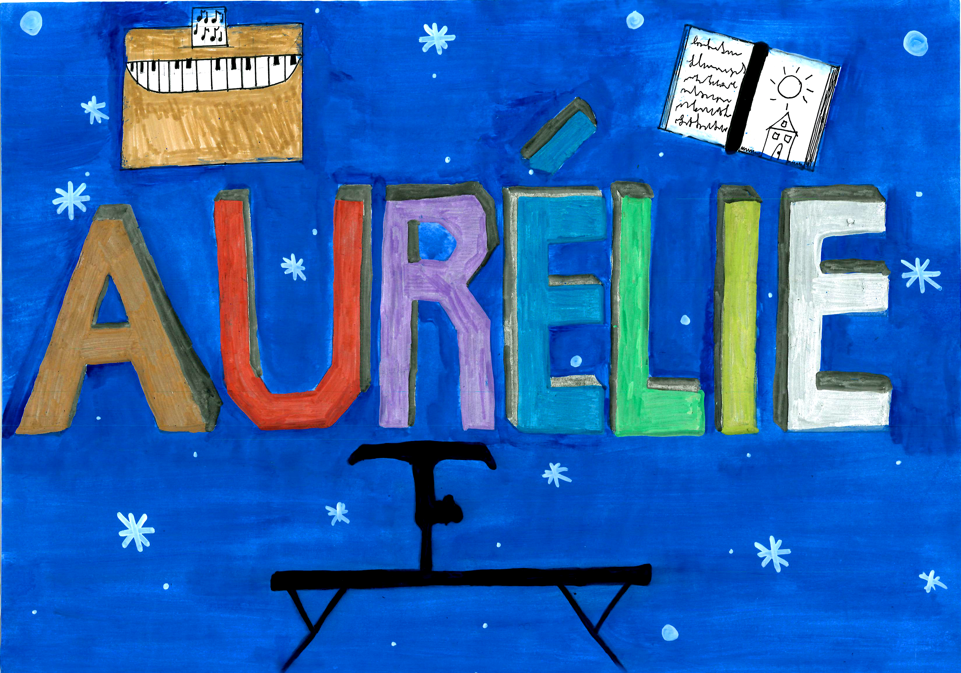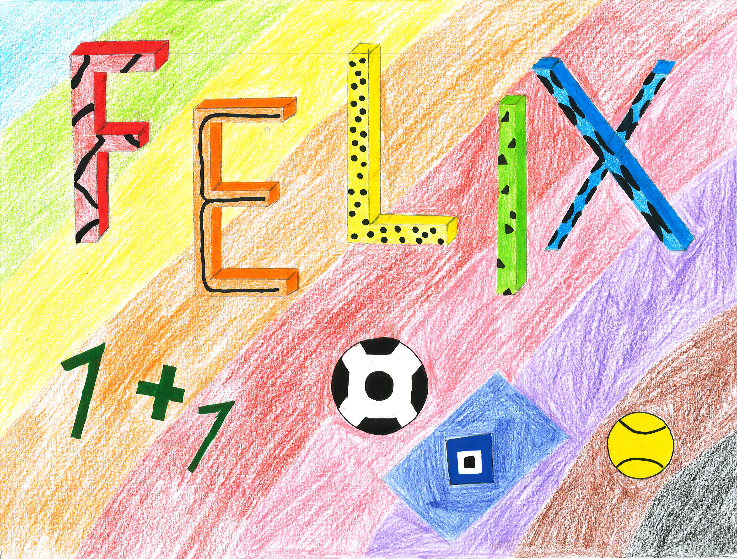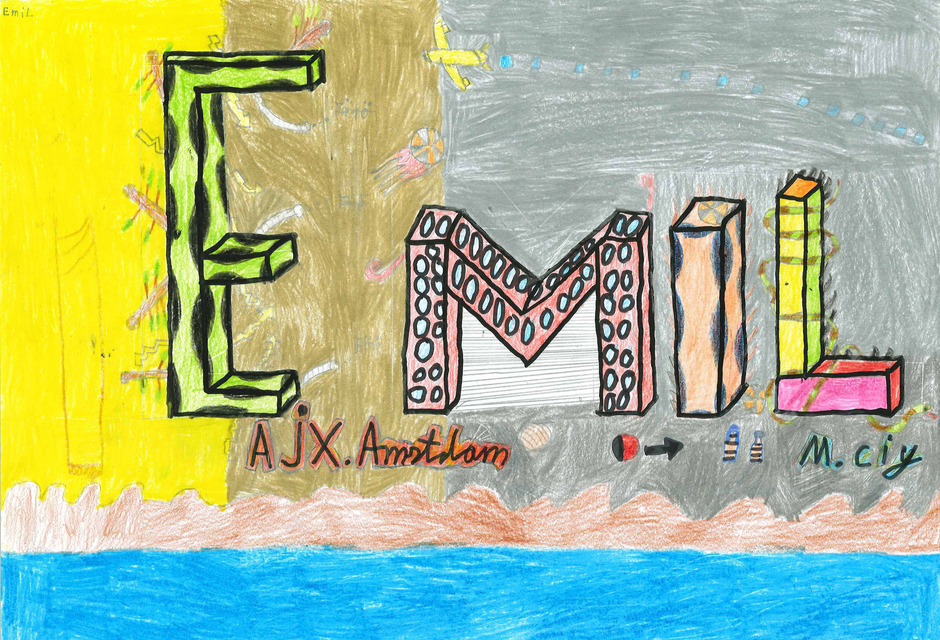 Die Aufgabe im Kunstunterricht der Klassen 5c und 5d bestand darin, den eigenen Namen in Parallelperspektive zu konstruieren. Nachdem dies geübt wurde, haben die Kinder den Namen auf ein größeres Blatt übertragen. Dazu sollten ergänzend mindestens zwei Dinge gezeichnet werden, die die eigene Persönlichkeit ausmachen. Auch die Art und Weise der Darstellung gab Auskunft über den Charakter.