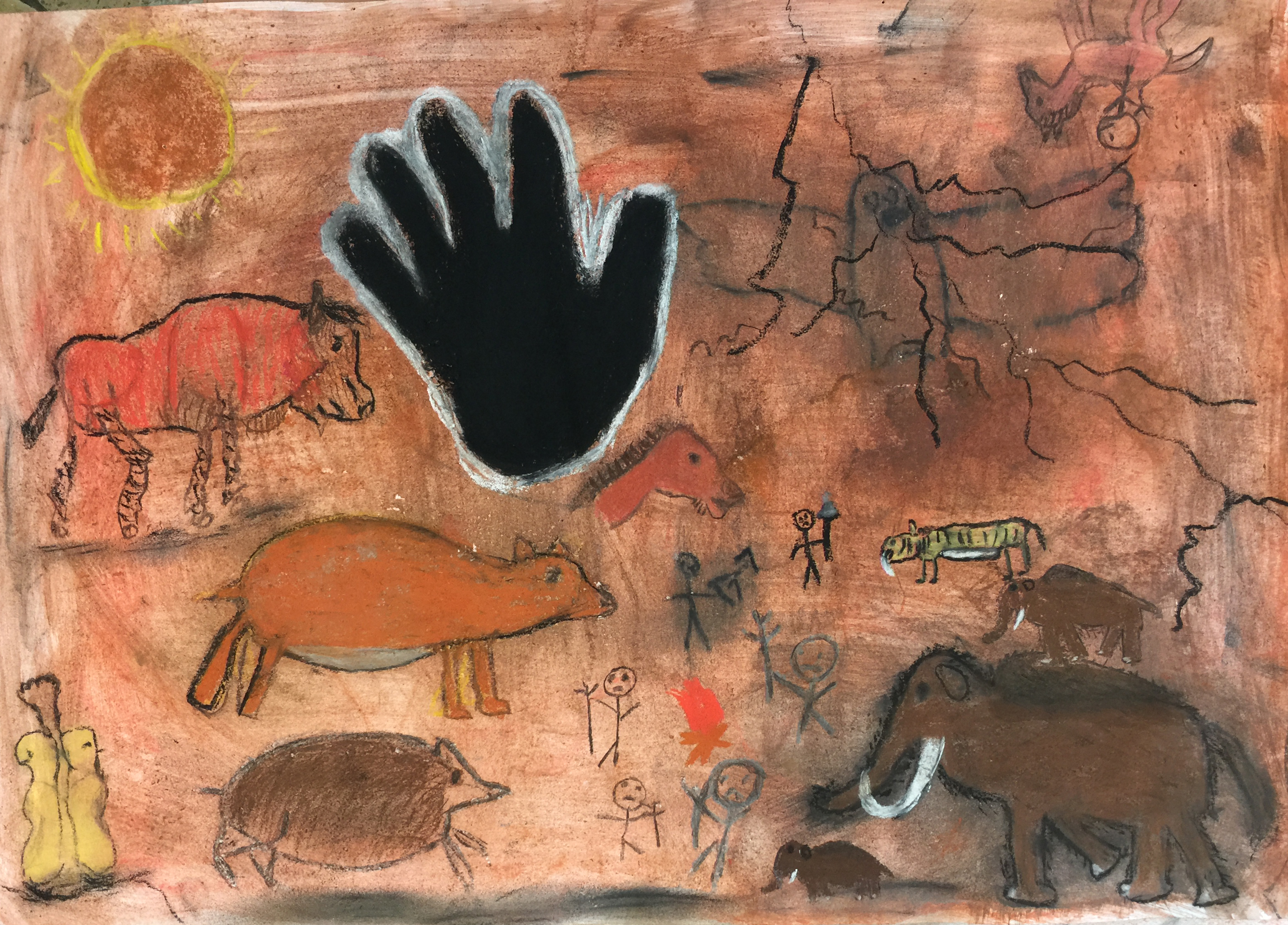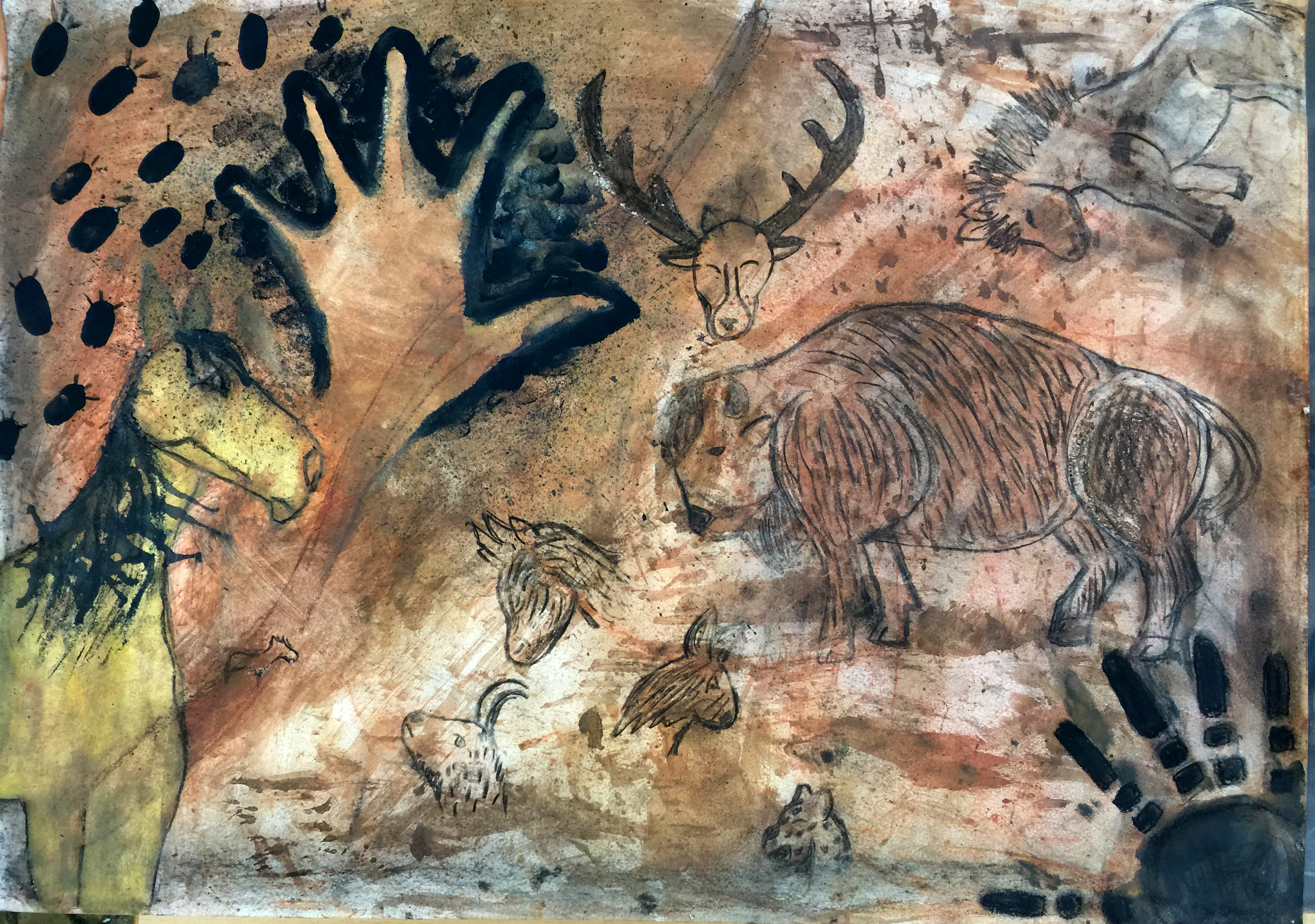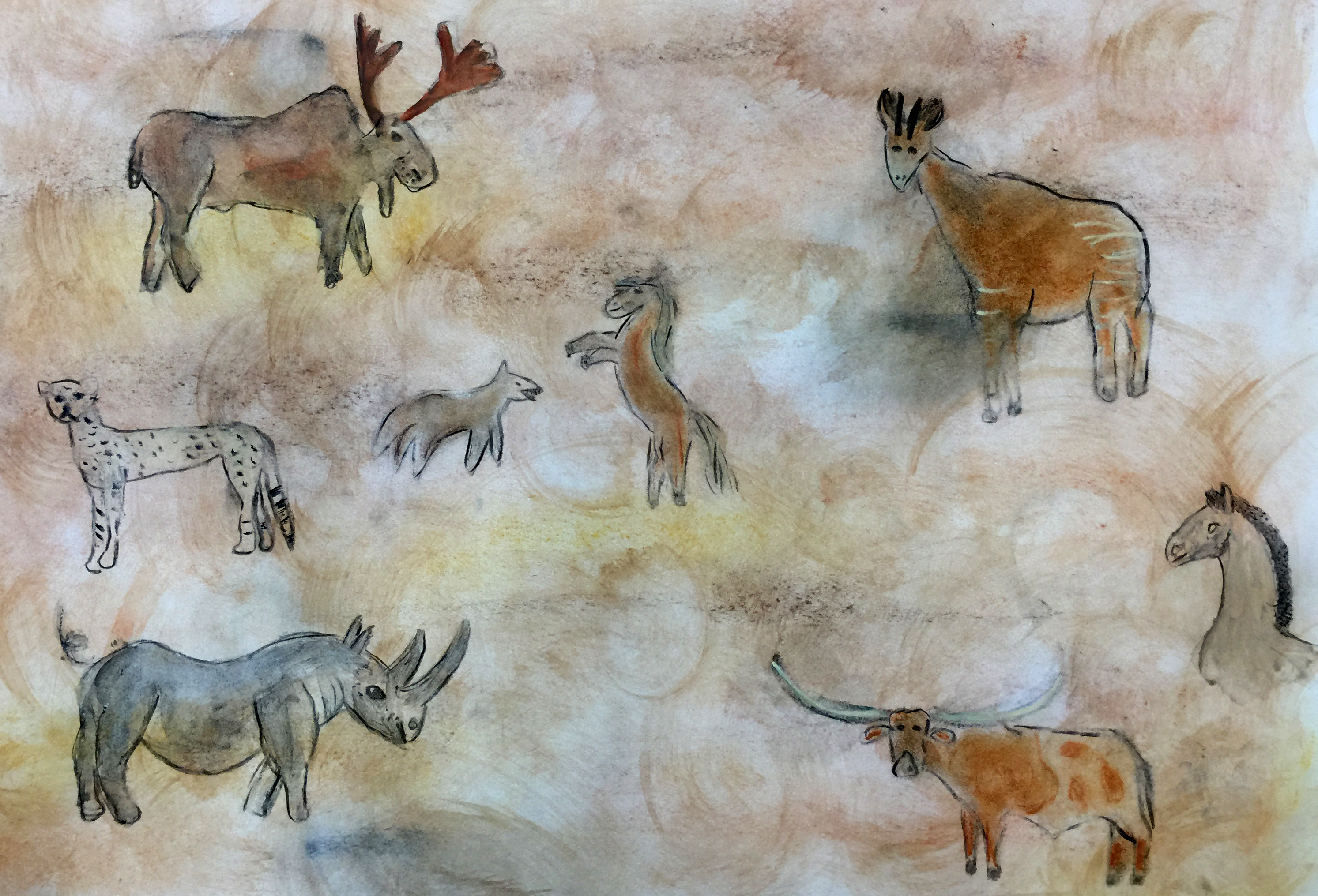 Auf den Spuren der ersten Künstler haben wir uns mit Tierdarstellungen und Höhlenmalerei auseinandergesetzt.
