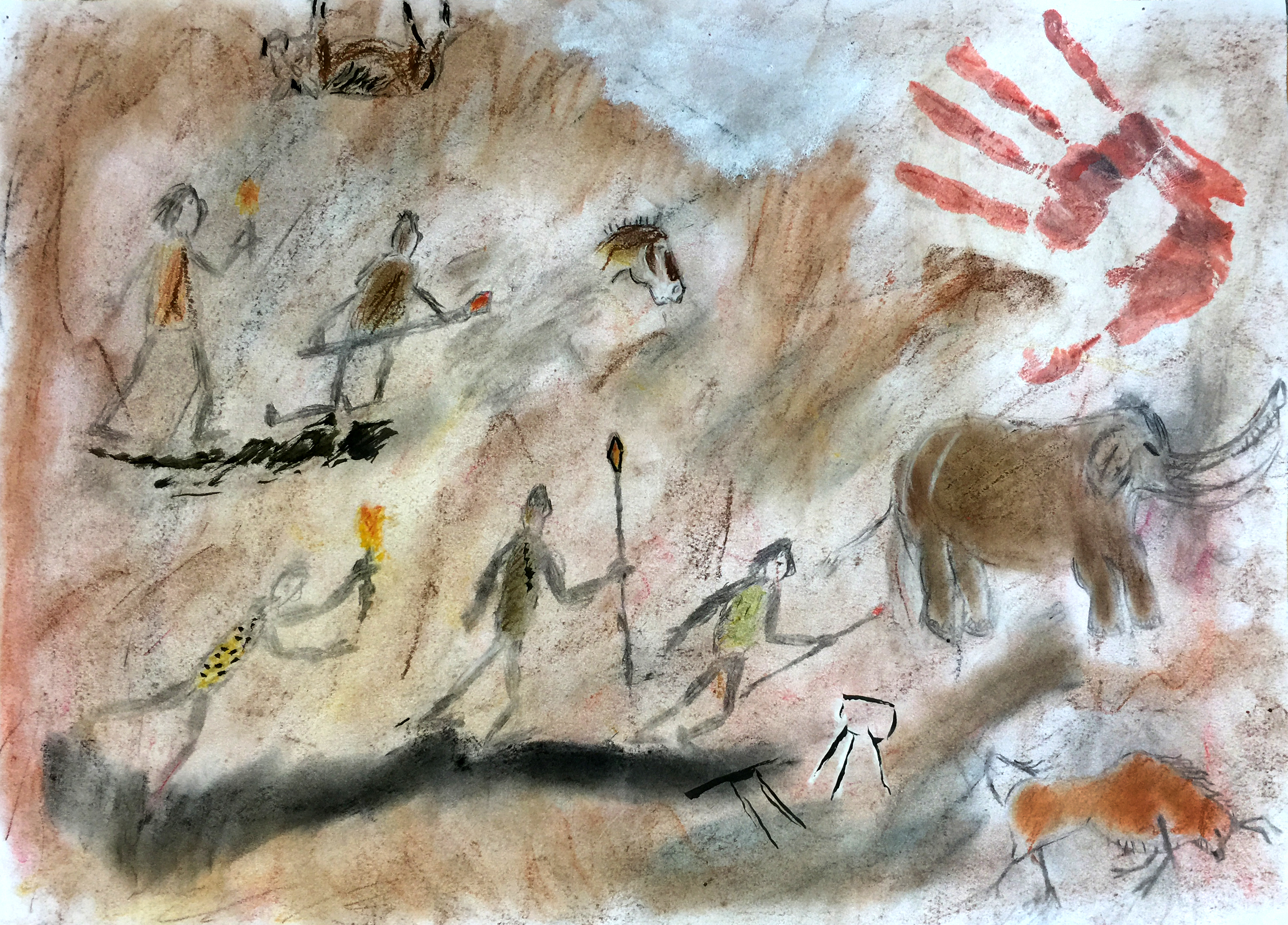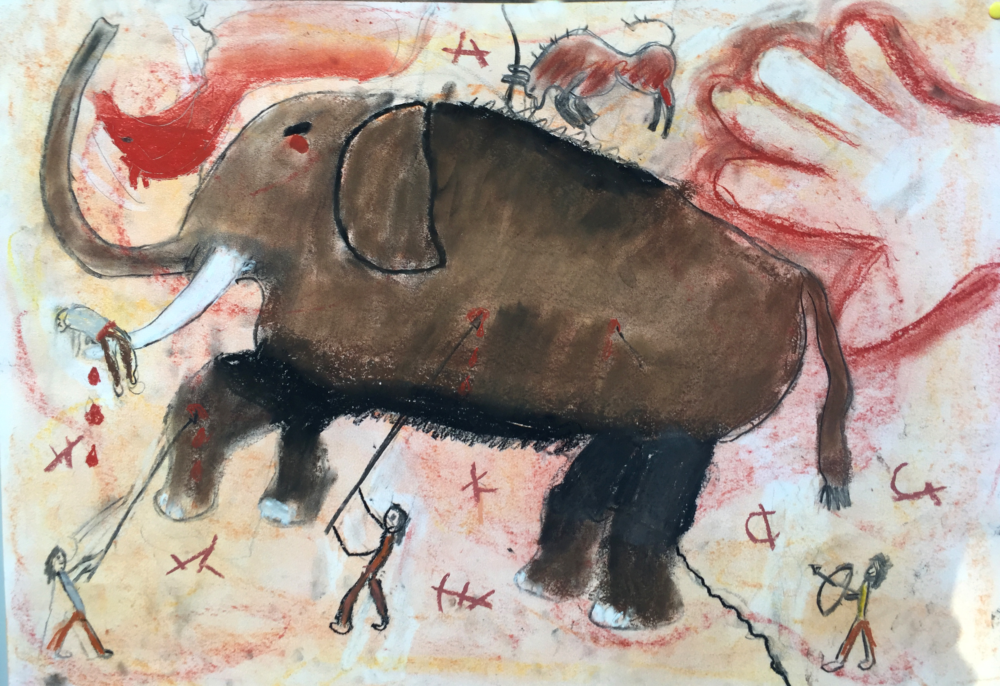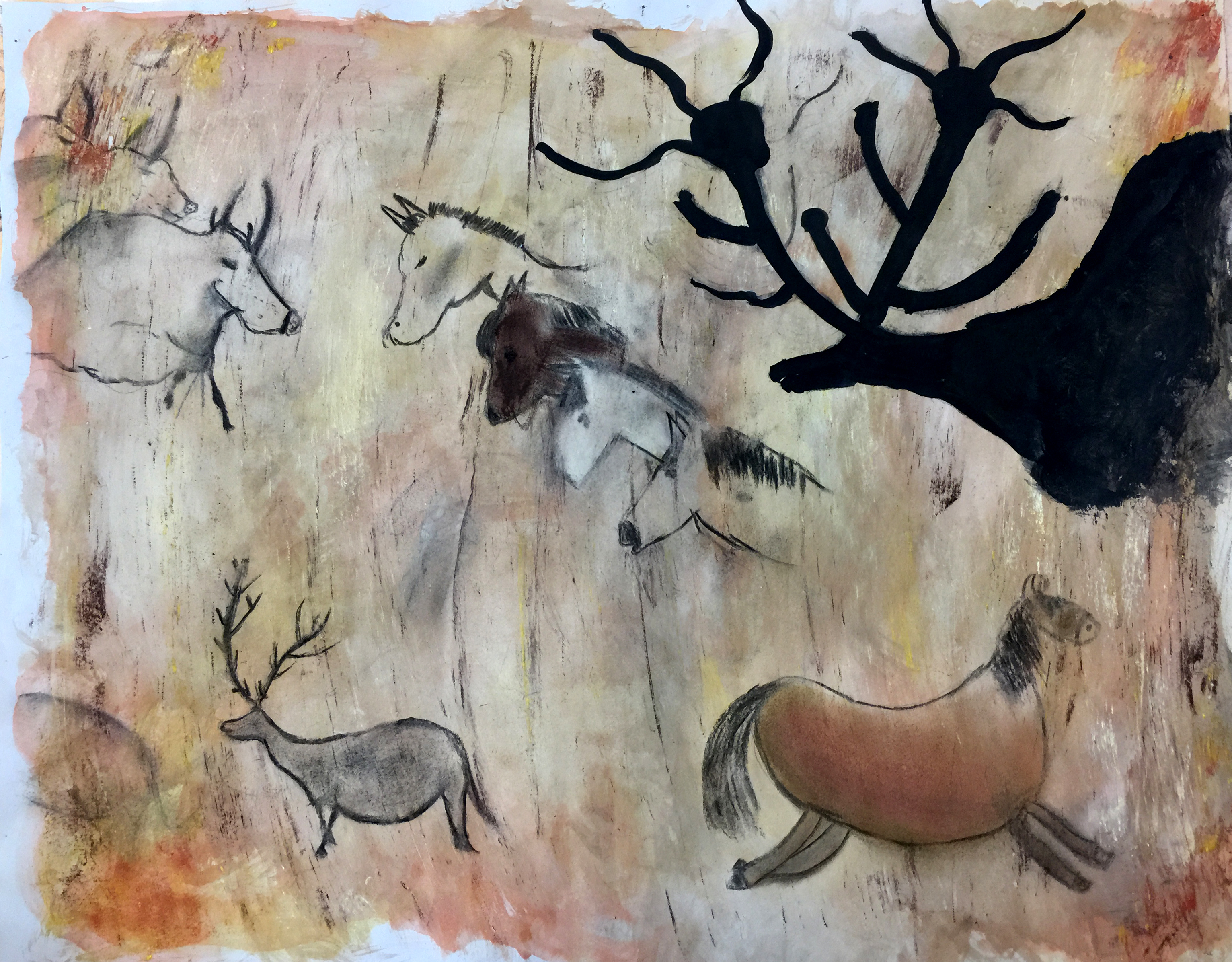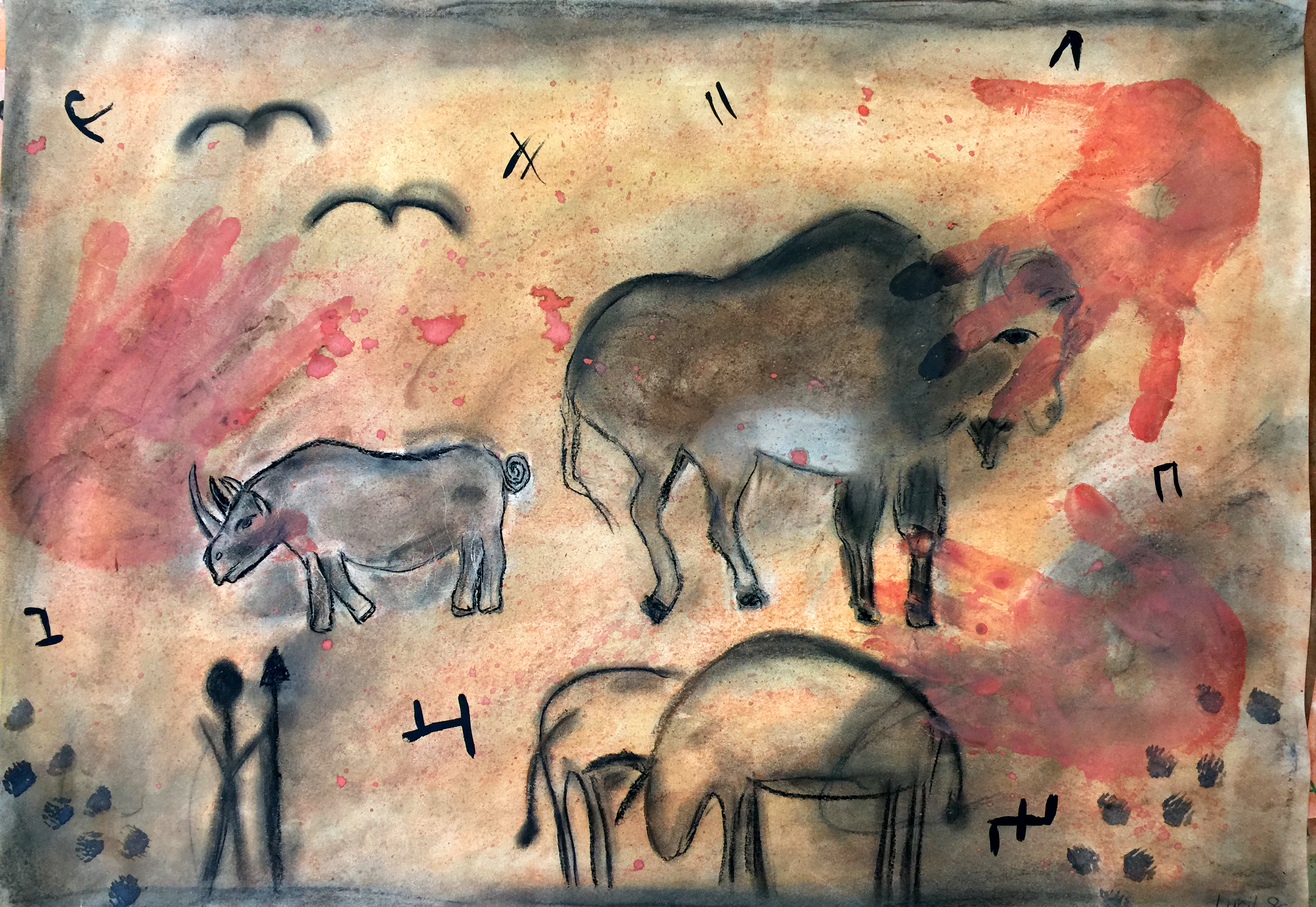 Auf den Spuren der ersten Künstler haben wir uns mit Tierdarstellungen und Höhlenmalerei auseinandergesetzt.