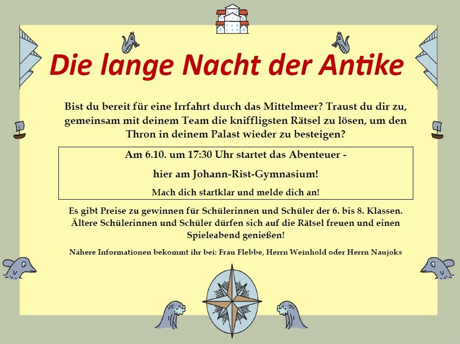 Eingeladen sind daher alle Schülerinnen und Schüler von Klasse 5 bis Q2, aber Achtung für 5-Klässler: Weil die Rätsel recht knackig sind, sollen wir die 5. Klassen ein wenig warnen: Aber wenn ihr euch nicht entmutigen lasst, dürfen auch die ganz jungen Heldinnen und Helden auf Irrfahrt gehen!
