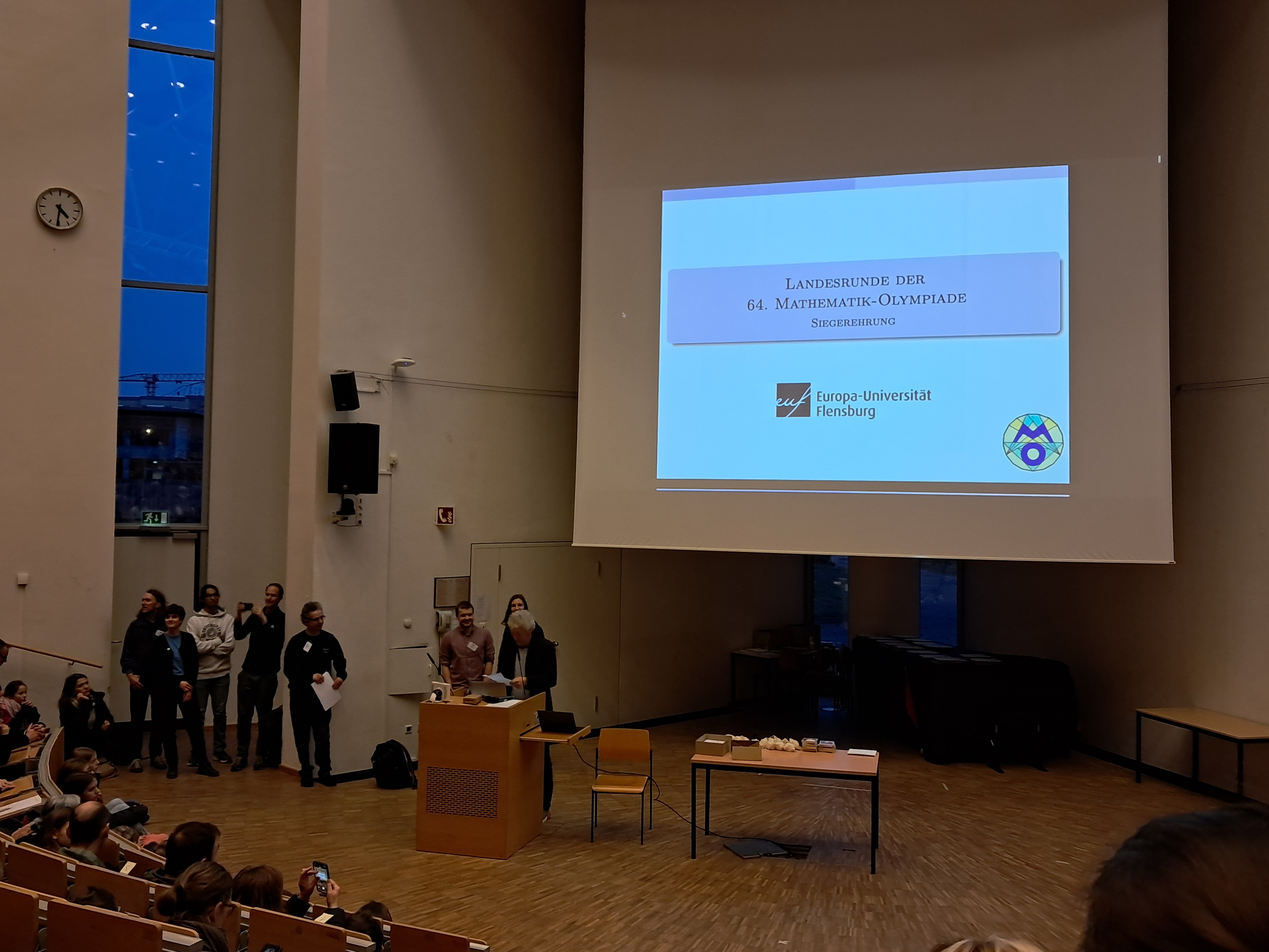 Die Landesrunde der Mathematik-Olympiade fand am Freitag/Samstag den 21./22.02.2025, in Flensburg statt. Neben dem intensiven Bearbeiten der Aufgaben, wurde auch ein interessantes Nebenprogramm organisiert, z.B. mit dem Besuch der Phänomenta.