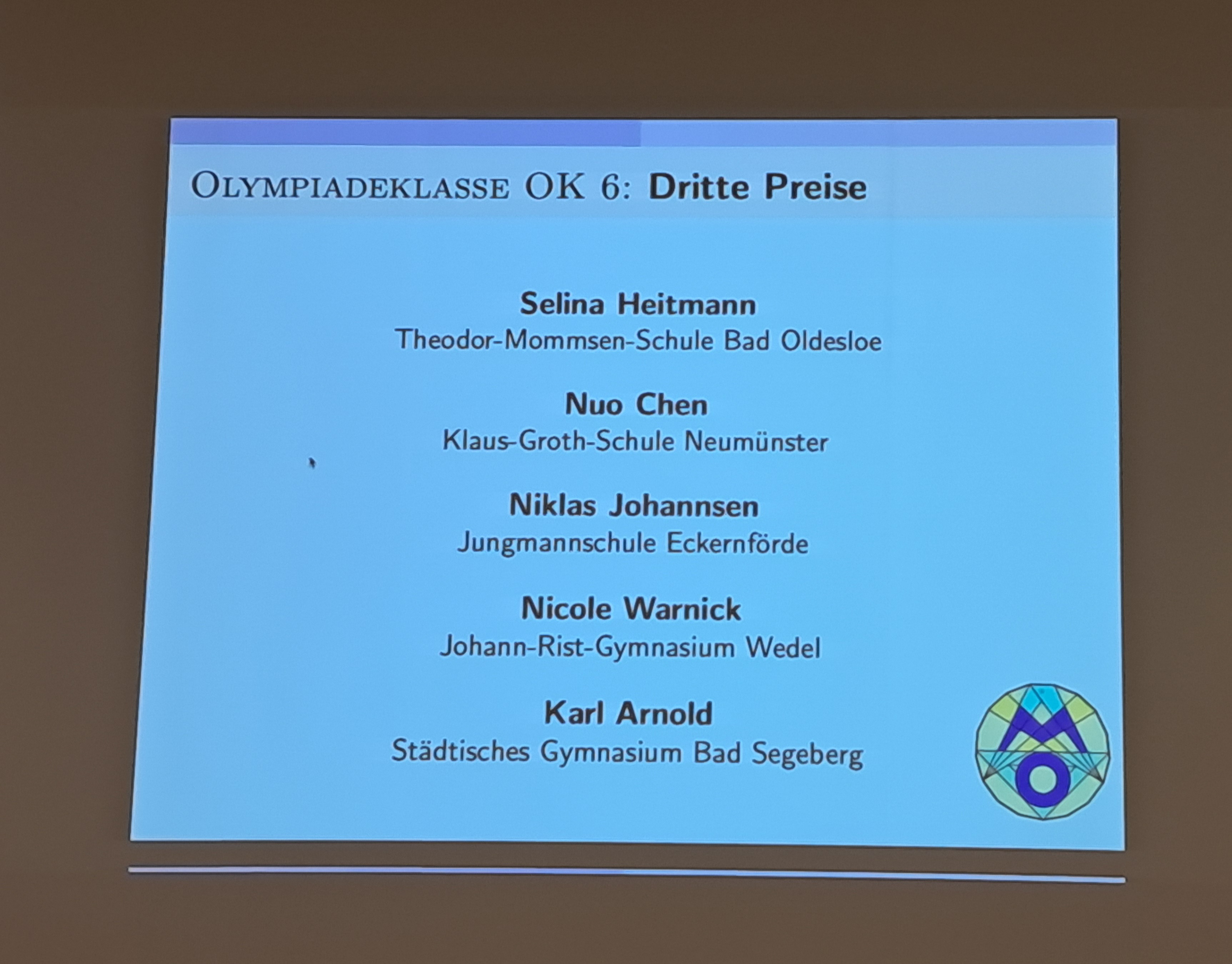 Unter den ca. 90 Teilnehmern der Kreisrunde haben sich dann vier Schülerinnen und Schüler des JRG für das 14-köpfige Team des Kreises Pinneberg qualifiziert und durften dann an der Landesrunde der Mathematik-Olympiade teilnehmen. Es sind: