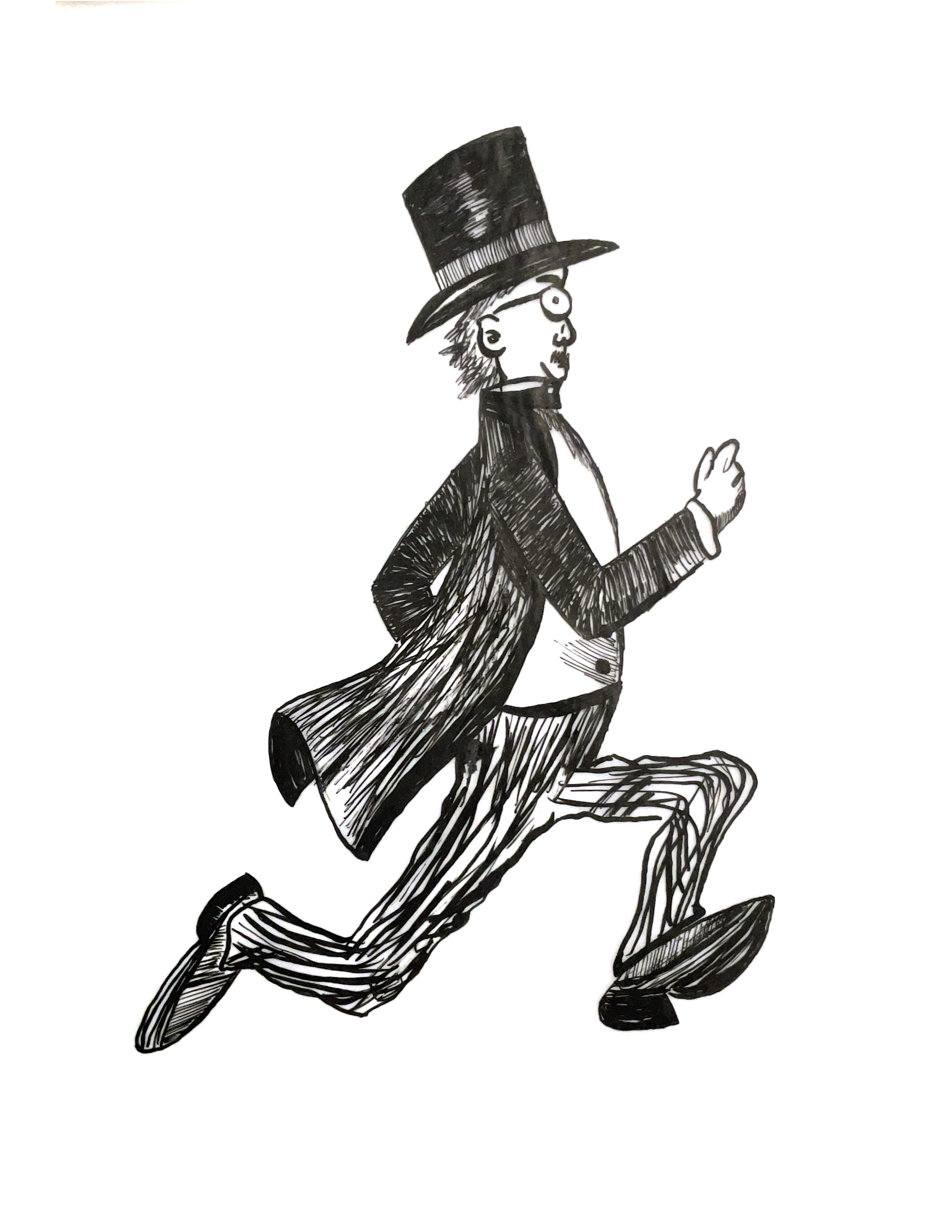 Die Kunstgruppe der Q1 hatte eine komplexe Aufgabenstellung. Es ging darum, eine Gehbewegung in zwölf Einzelbildern zu zeichnen, die als Loop hintereinander abgespielt werden können. Das sogenannte „Prinzip des trägen Auges” verbindet diese Einzelbilder im Gehirn des Betrachters zu einem Bewegungsablauf.