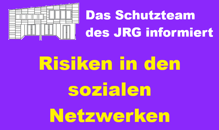 Bei Gesprächsbedarfen wenden Sie sich gerne auch an das Schutzteam des JRG. Die Kontaktdaten von Frau Müller-Zeiger und Frau Witt (beide Schulsozialarbeiterinnen) sowie Frau Roth-Bayer und Herrn Naujoks (beide Vertrauenslehrkräfte) finden Sie auf der Homepage unter der Rubrik: Schulportrait/Schutzkonzept. Aber auch jede weitere am JRG tätige Lehrkraft ist dafür sensibilisiert, sich ihren Fragen bzw. Themen anzunehmen und die richtigen Handlungsschritte zu gehen.