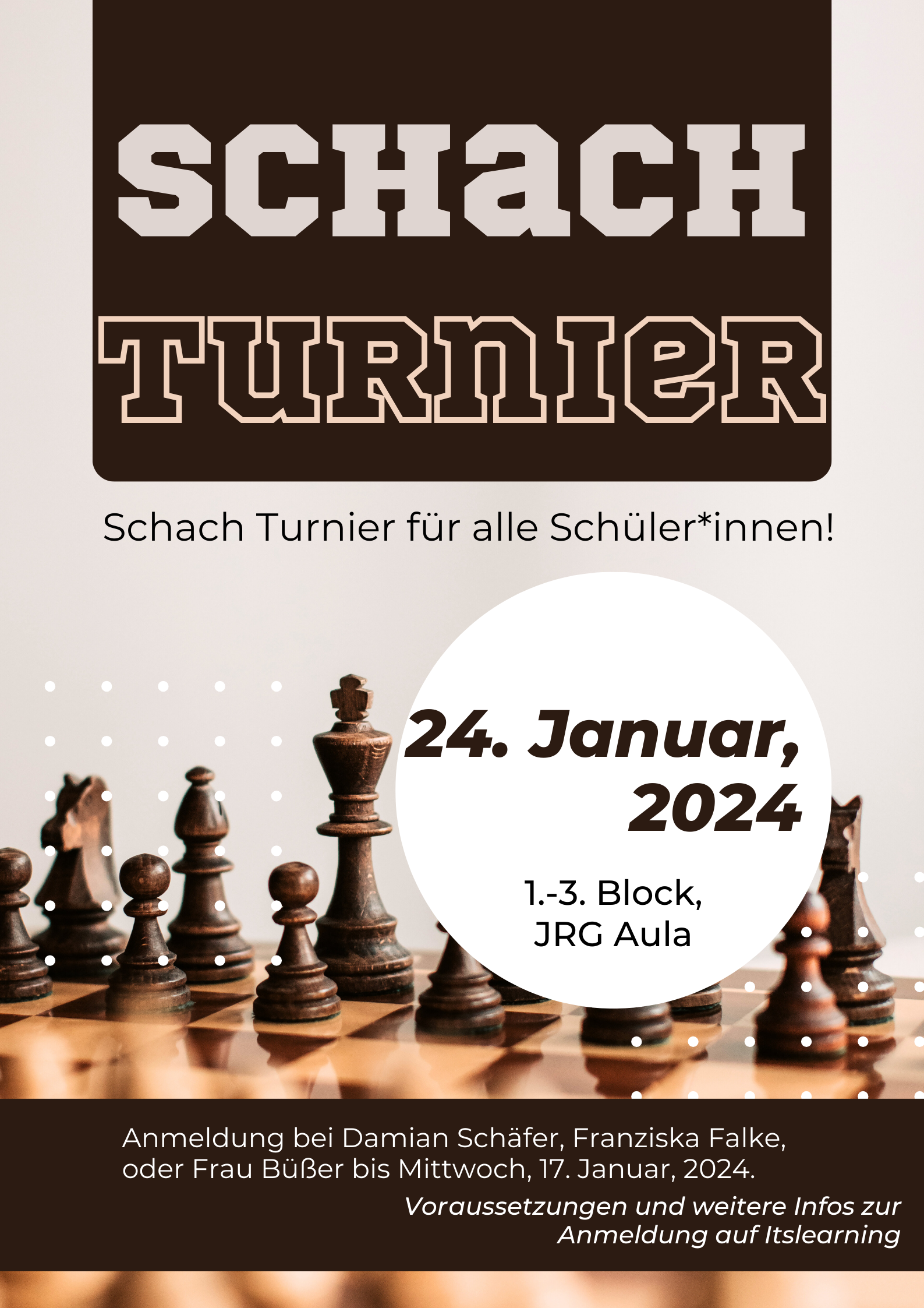 Schreibt dazu bitte eine kurze Nachricht "Schach 24.1. und Eure Klasse"