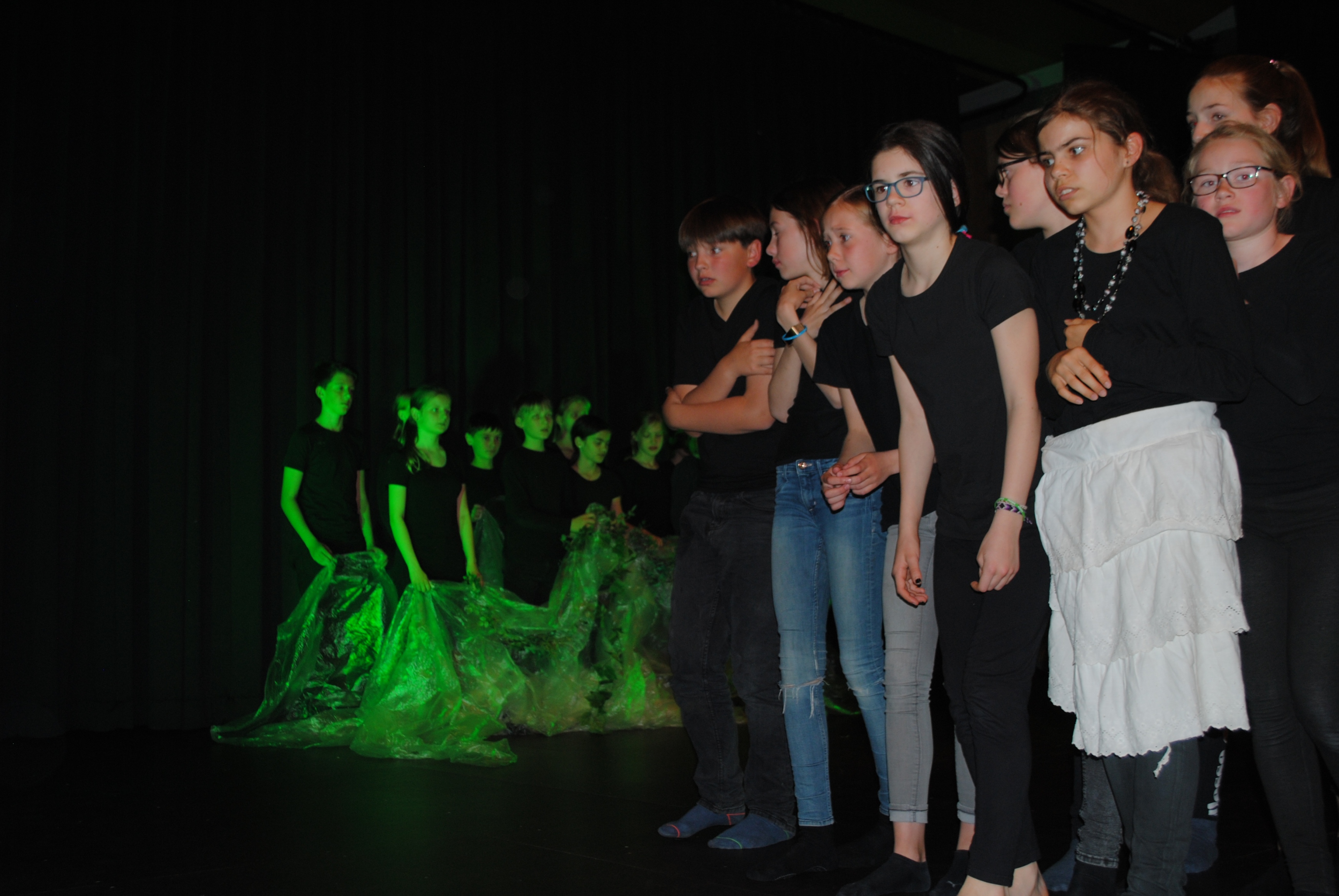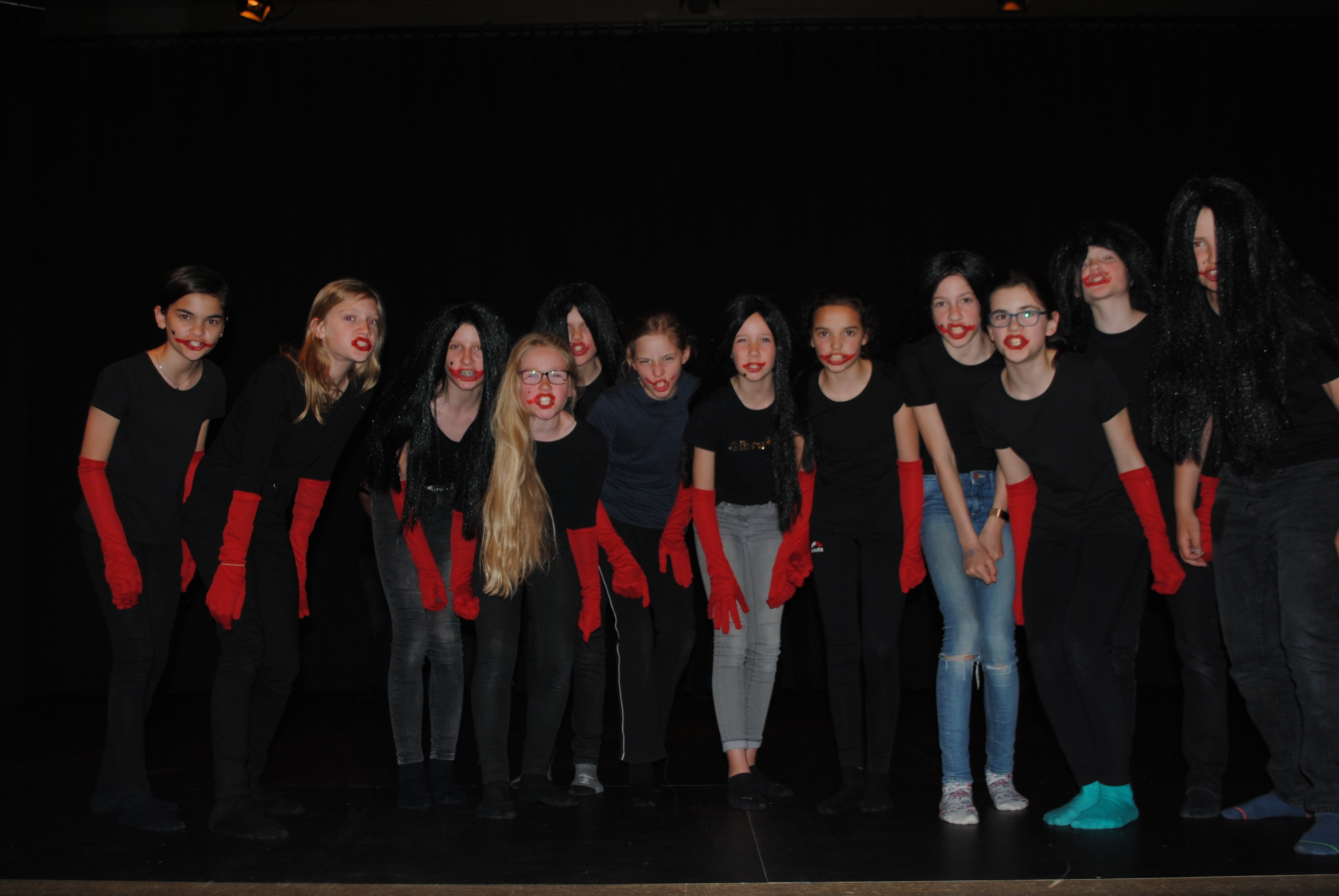 Die Schülerinnen und Schüler der Unterstufentheater-AG haben sich seit Beginn des Schuljahres mit dem Märchen Schneewittchen befasst und eine ganz eigene Fassung der klassischen Vorlage entworfen, mit einem selbst verfassten Text, eigenen Choreographien, mit Doppelungen und Spiegelungen, mit viel Rot, aber in erster Linie mit viel Freude am Theaterspielen.