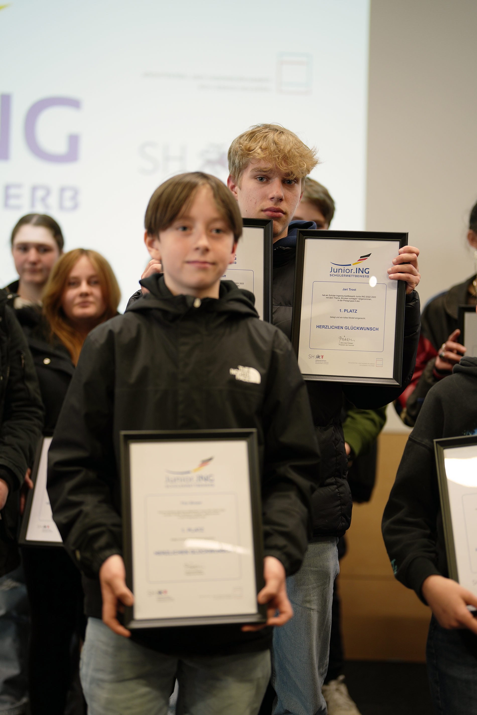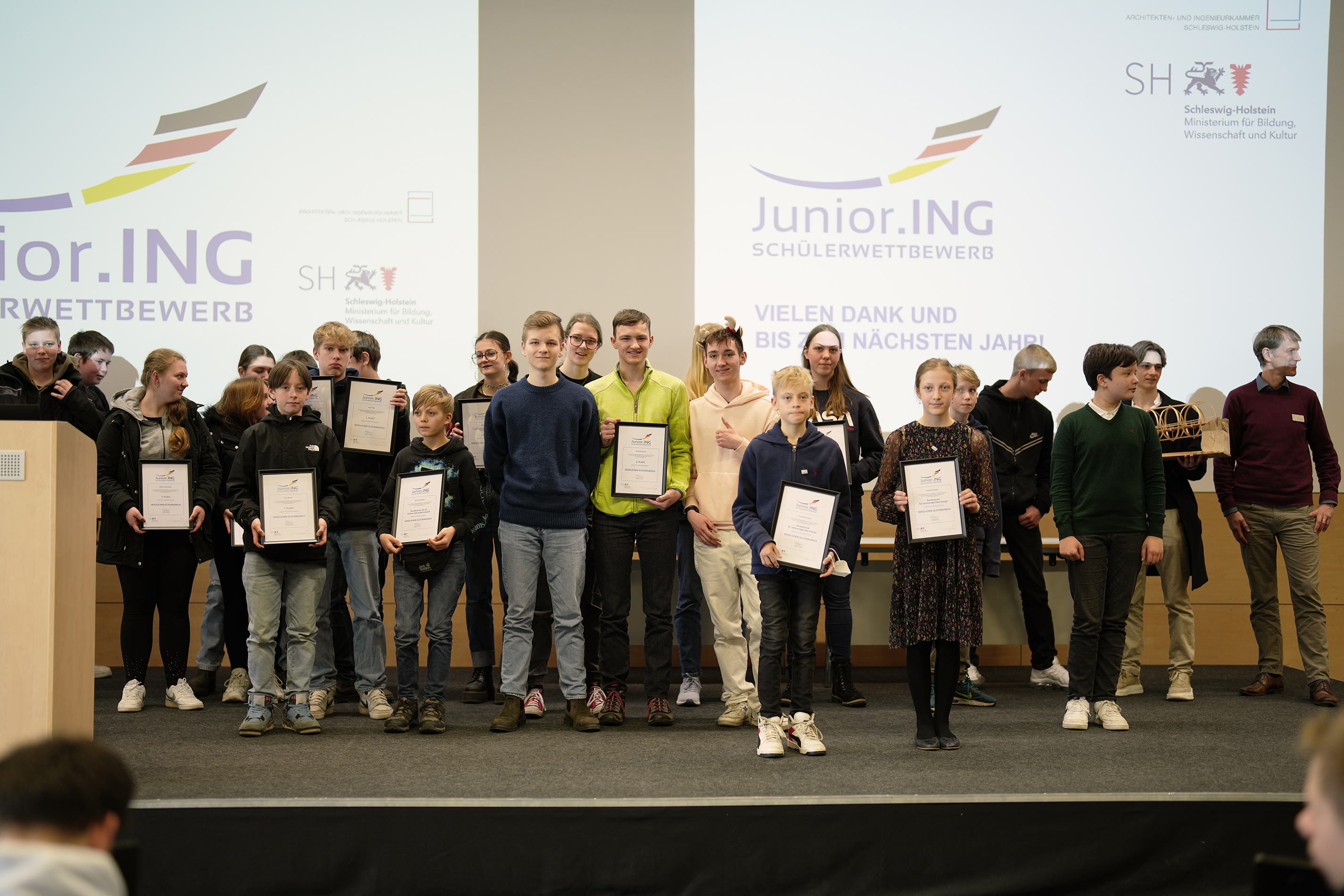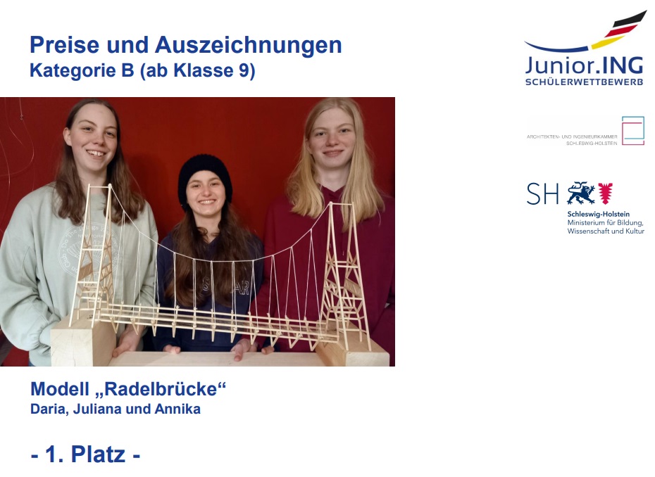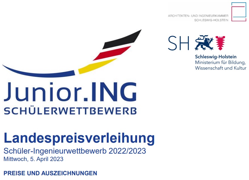 Bei der Siegerehrung vom JuniorING- Brückenbauwettbewerb 2022/23 in Kiel hat das JRG kurz vor den Osterferien richtig abgeräumt.