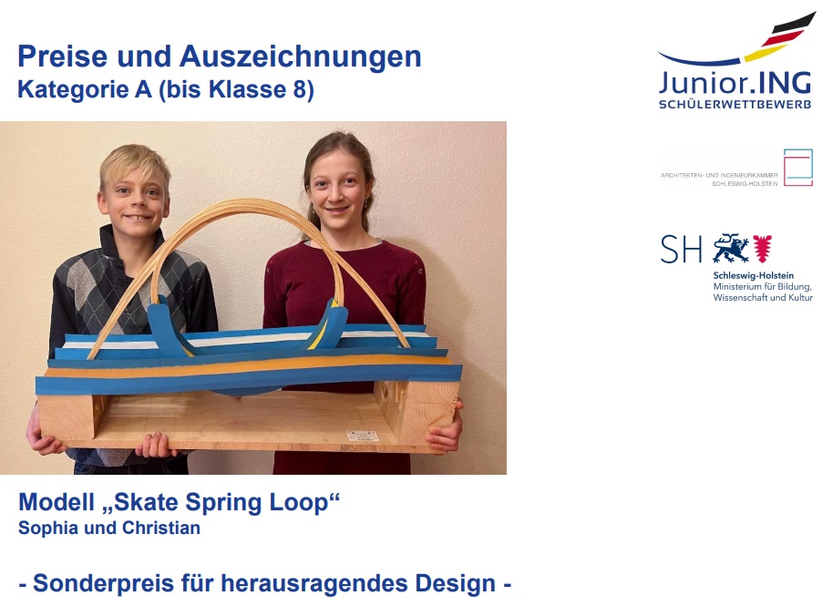 Den Reigen eröffneten Sofia und Christian aus der 6. Klasse mit ihrer Skate-Spring-Loop-Brücke, die den Sonderpreis für herausragendes Design erhielt.