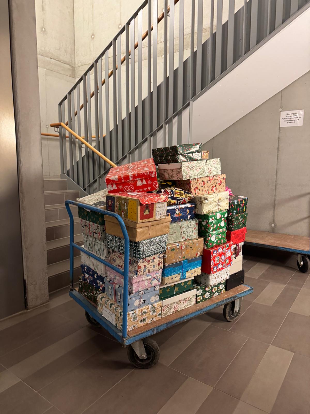 Die Aktion war trotz der sehr kurzen Vorbereitungszeit ein großer Erfolg, denn es konnten fast 50 Päckchen gepackt und an die Samariter, die für die Aktion verantwortliche Organisation übergeben werden.