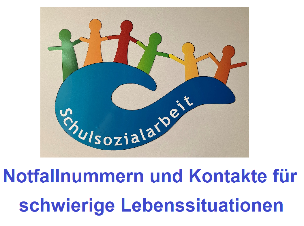 Zusätzlich verweisen wir auch auf die unten aufgeführten Nummern und Adressen, dort wird Unterstützung und Entlastung geboten, auch zu Tageszeiten, in denen die Schulsozialarbeit nicht mehr zu erreichen ist.
