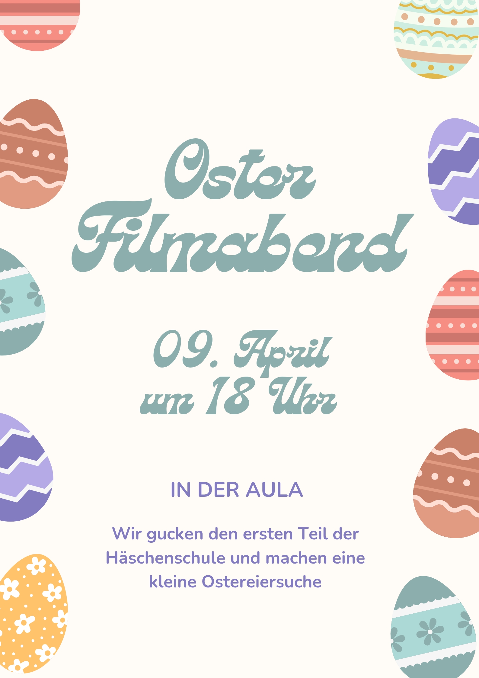 Da bald nicht nur Ferien, sondern auch Ostern ist, lädt die SV die gesamte Schülerschaft herzlich zu einem krönenden Abschluss, einem gemütlichen Osterfilmabend ein....