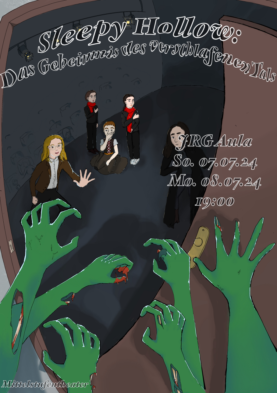 Die Theater AG der Mittelstufe spielt dieses Jahr die Gruselkomödie "Sleepy Hollow" von M. Hahn nach der bekannten Erzählung von Washington Irving.