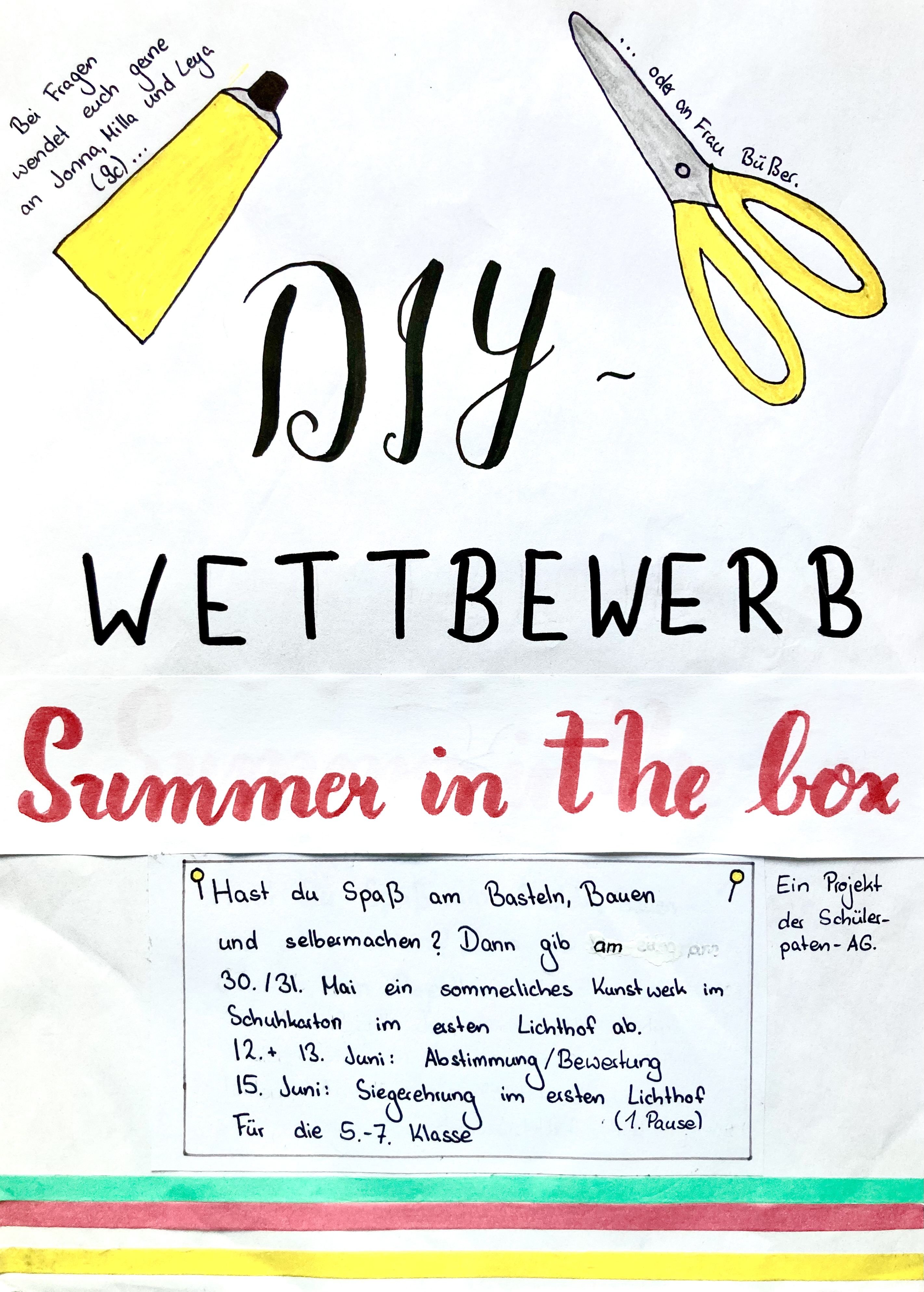Die Schülerpaten-AG organisiert einen Wettbewerb zum Thema "Sommer im Schuhkarton" für die Klassen 5 - 7