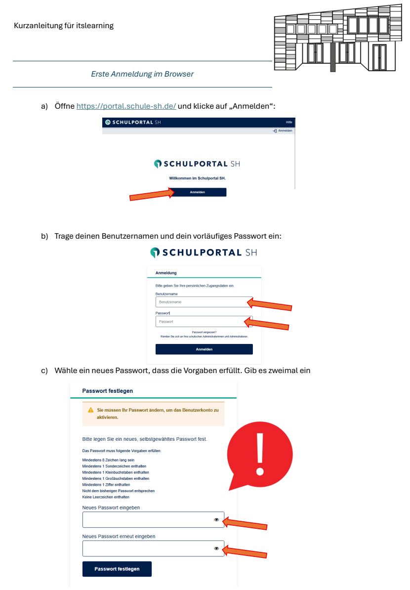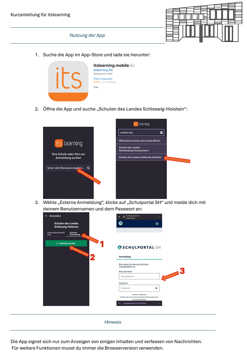 Am Johann-Rist-Gymnasium arbeiten wir mit itslearning. Jede Schülerin und jeder Schüler muss sich in diesem System anmelden. Mit der nachfolgenden kommentierten Bildergalerie wird dieser Anmeldeprozess deutlich gemacht. Man kann diese Kurzanleitung auch unter folgendem Link runterladen: